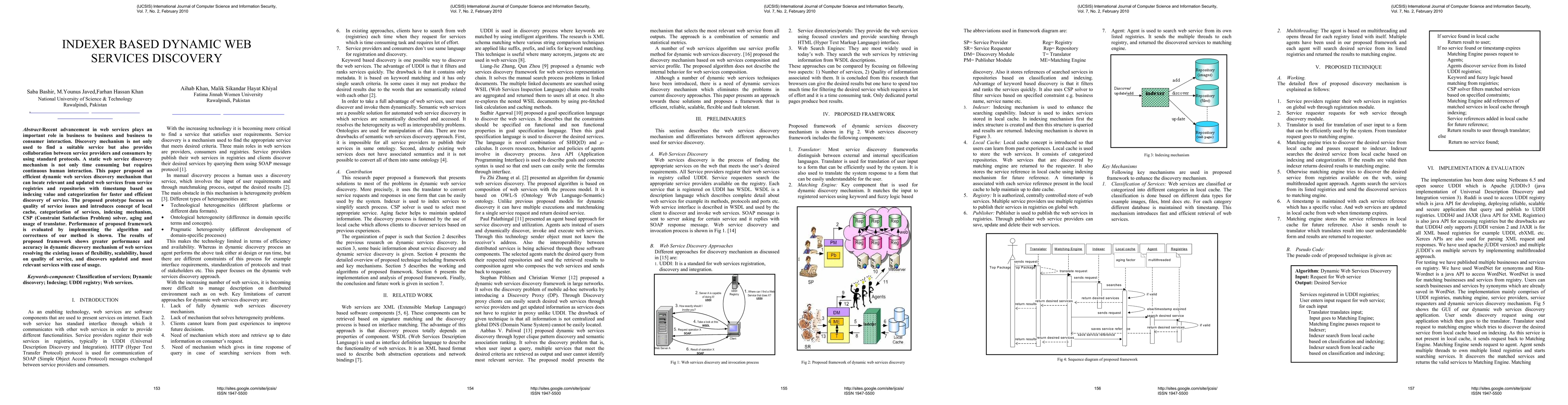 This paper proposes a dynamic web services discovery mechanism using indexing and categorization to efficiently locate updated services. The framework incorporates local cache, CSP solver, and translator for improved service quality, demonstrating enhanced performance and accuracy over static methods.