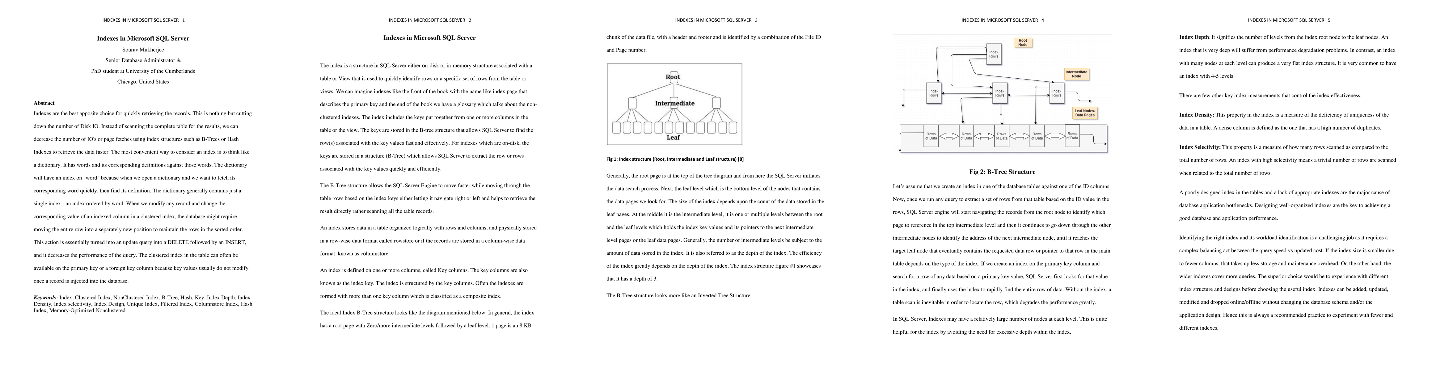 Indexes are the best apposite choice for quickly retrieving the records. This is nothing but cutting down the number of Disk IO. Instead of scanning the complete table for the results, we can decrease the number of IO's or page fetches using index structures such as B-Trees or Hash Indexes to retrieve the data faster. The most convenient way to consider an index is to think like a dictionary. It has words and its corresponding definitions against those words. The dictionary will have an index on "word" because when we open a dictionary and we want to fetch its corresponding word quickly, then find its definition. The dictionary generally contains just a single index - an index ordered by word. When we modify any record and change the corresponding value of an indexed column in a clustered index, the database might require moving the entire row into a separately new position to maintain the rows in the sorted order. This action is essentially turned into an update query into a DELETE followed by an INSERT, and it decreases the performance of the query. The clustered index in the table can often be available on the primary key or a foreign key column because key values usually do not modify once a record is injected into the database.