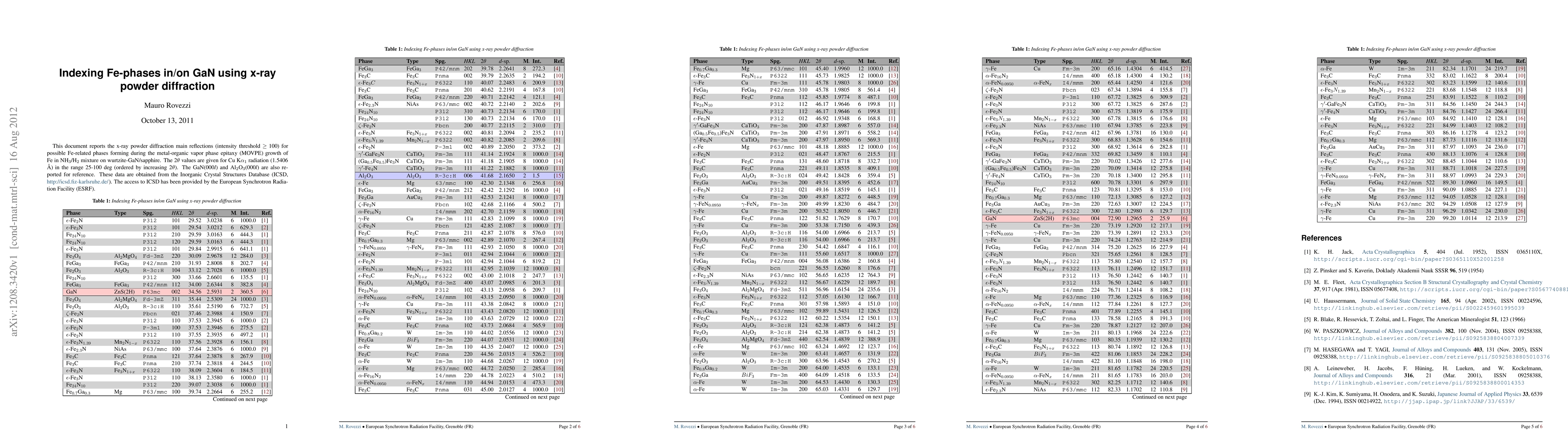 The study reports key reflections for these phases, providing valuable insights into the growth process of iron on wurtzite-GaN/sapphire.
