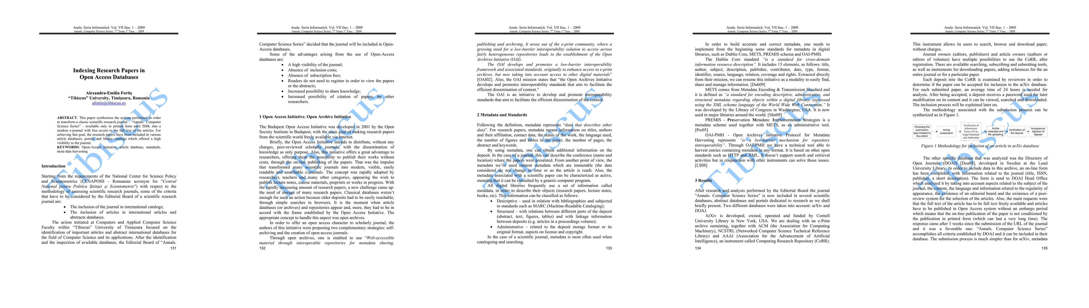 This paper synthesizes the actions performed in order to transform a classic scientific research journal - 'Annals. Computer Science Series' - available only in printed form until 2008, into a modern e-journal with free access to the full text of the articles. For achieving this goal, the research papers have been included in various article databases, portals and library catalogs which offered a high visibility to the journal.