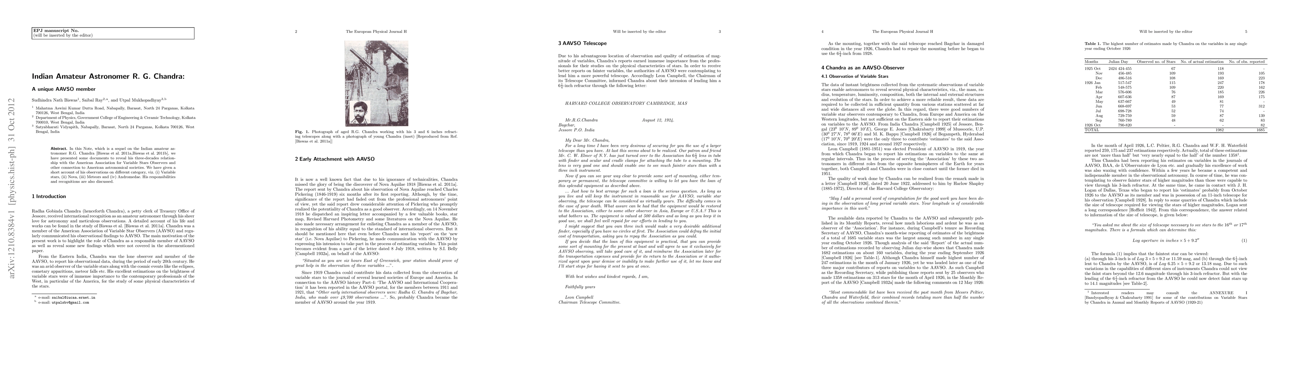 In this Note, which is a sequel on the Indian amateur astronomer R.G. Chandra [Biswas2011a, Biswas2011b], we have presented some documents to reveal his three-decades relationship with the American Association for Variable Stars Observers and other connection to American astronomical societies. We have given a short account of his observations on different category, viz. (i) Variable stars, (ii) Nova, (iii) Meteors and (iv) Andromedae. His responsibilities and recognitions are also discussed.