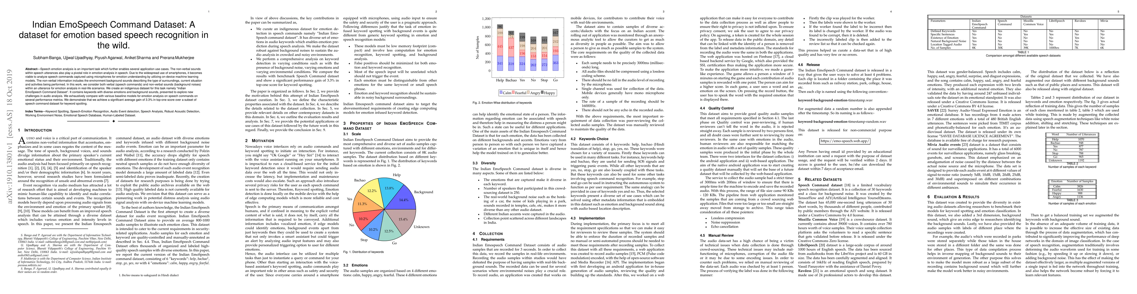 Researchers created a new dataset to analyze emotions in speech commands, achieving a 3.3% average gain over baseline models for emotion recognition.