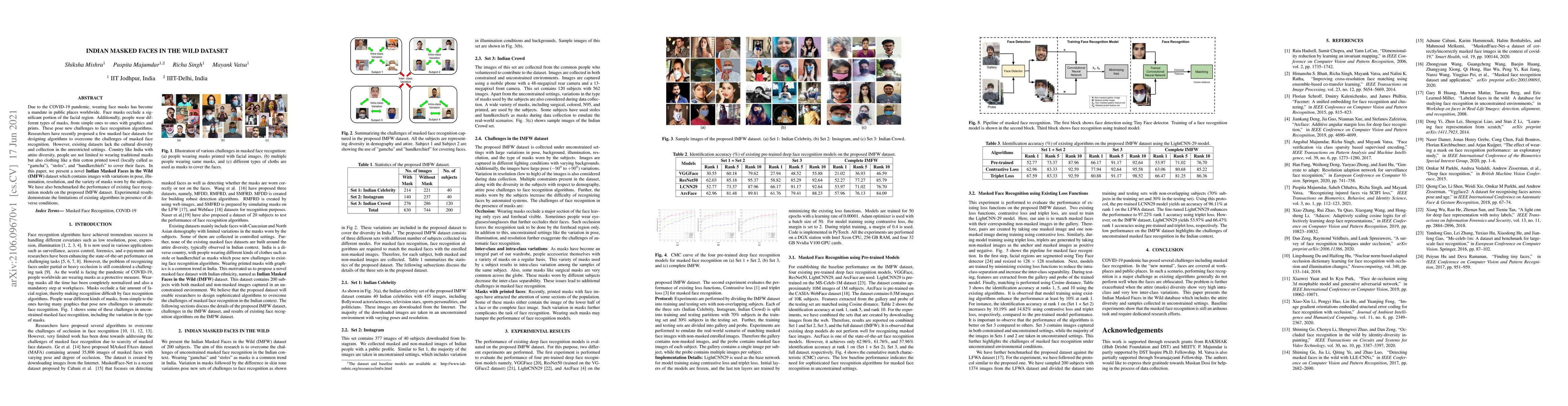 The Indian Masked Faces in the Wild (IMFW) dataset addresses the challenges of face recognition under masked conditions, particularly in culturally diverse settings like India, featuring various types of masks and face coverings. Existing face recognition models show significant limitations when tested on this dataset, highlighting the need for more diverse training data.