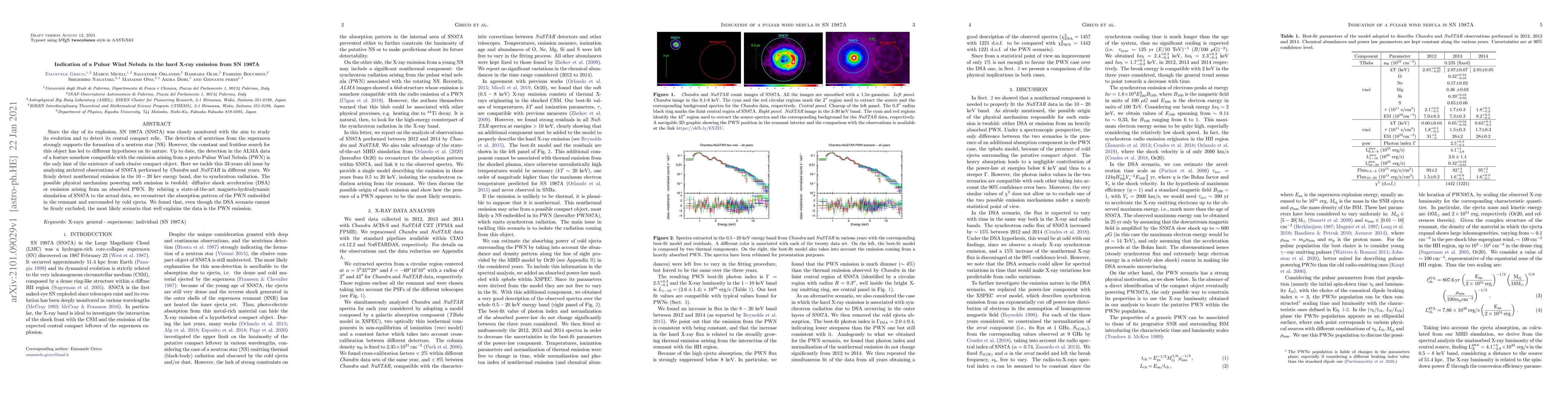 The research detects nonthermal emission in the 10-20 keV energy band from SN 1987A, suggesting the presence of a Pulsar Wind Nebula (PWN) powered by a neutron star. This conclusion is reached by ruling out diffusive shock acceleration as the primary mechanism, based on magneto-hydrodynamic simulations and comparison with actual data.