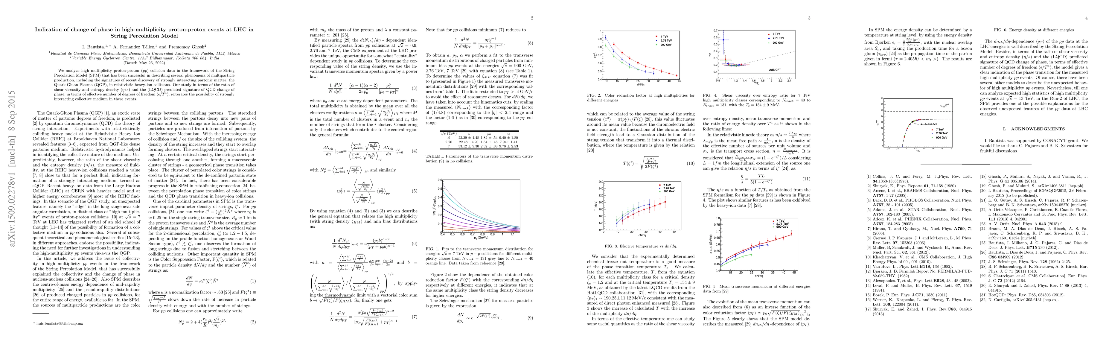 This paper analyzes high-multiplicity proton-proton collision data using the String Percolation Model to explore signatures of the Quark Gluon Plasma. The study finds evidence supporting the existence of a strongly interacting collective medium through the ratio of shear viscosity to entropy density and the effective number of degrees of freedom.