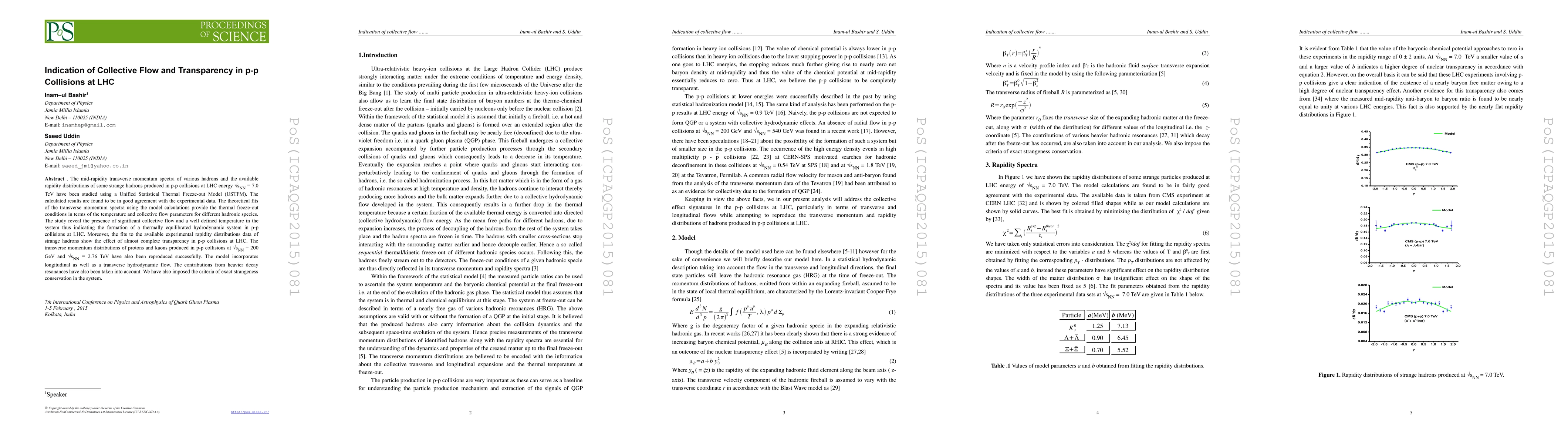This research investigates the thermal freeze-out conditions in p-p collisions at LHC energies using a statistical model, revealing significant collective flow and a well-defined temperature, indicating a hydrodynamically equilibrated system. The model also demonstrates near-complete transparency in strange hadron distributions and successfully reproduces transverse momentum spectra at various collision energies.