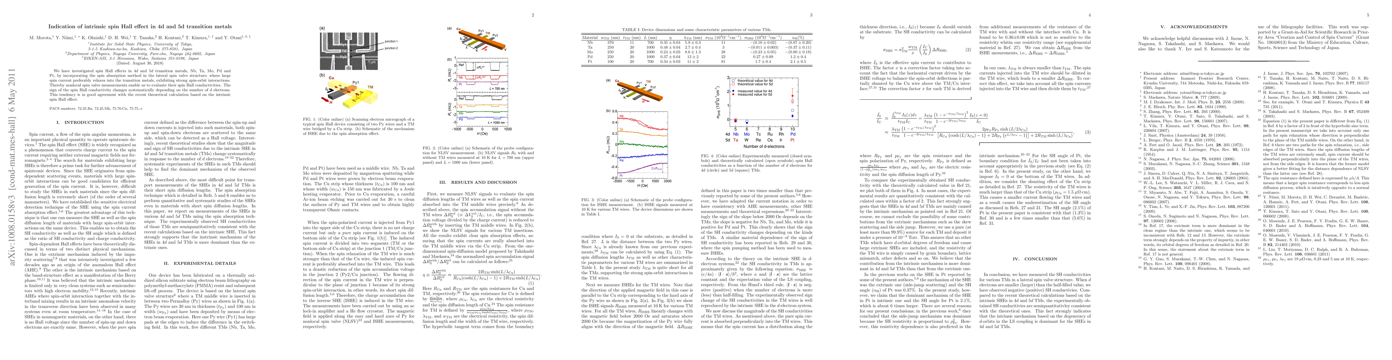 The paper presents a detailed experimental study of spin Hall conductivities in 4d and 5d transition metals, supporting the intrinsic spin Hall effect mechanism in these materials.