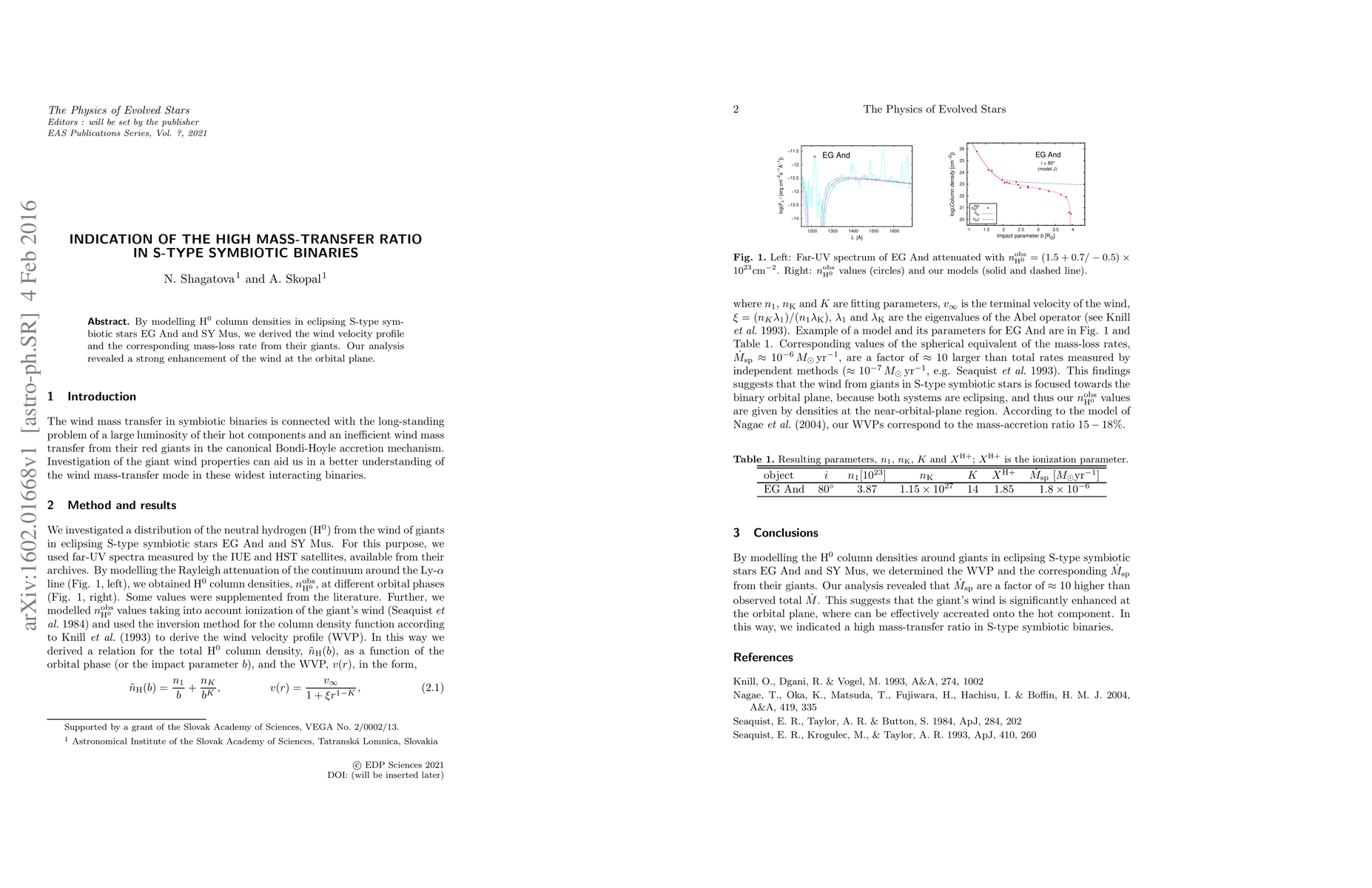 This study models H$^0$ column densities in S-type symbiotic binaries EG And and SY Mus, revealing a high mass-transfer ratio due to an enhanced wind velocity and mass-loss rate from the giant stars, particularly at the orbital plane.