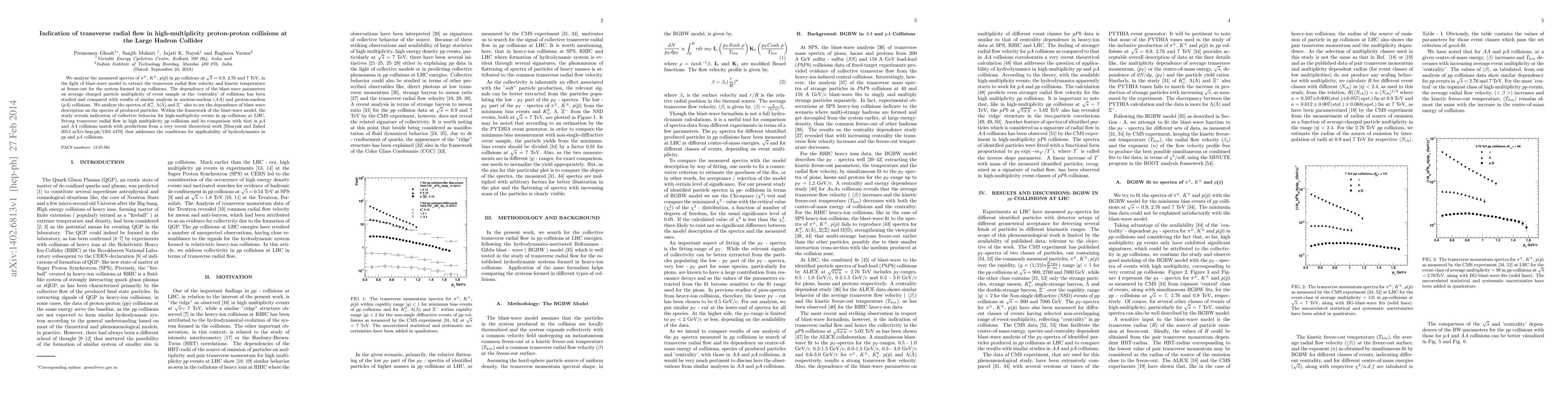 We analyze the measured spectra of $\pi^\pm$, $K^\pm$, $p$($\bar p$) in $pp$ collisions at $\sqrt {s}$ = 0.9, 2.76 and 7 TeV, in the light of blast-wave model to extract the transverse radial flow velocity and kinetic temperature at freeze-out for the system formed in $pp$ collisions. The dependency of the blast-wave parameters on average charged particle multiplicity of event sample or the `centrality' of collisions has been studied and compared with results of similar analysis in nucleus-nucleus ($AA$) and proton-nucleus ($pA$) collisions. We analyze the spectra of $K_{s}^0$, $\Lambda$($\bar \Lambda$) and $\Xi^-$ also to see the dependence of blast-wave description on the species of produced particles. Within the framework of the blast-wave model, the study reveals indication of collective behavior for high-multiplicity events in $pp$ collisions at LHC. Strong transverse radial flow in high multiplicity $pp$ collisions and its comparison with that in $pA$ and $AA$ collisions match with predictions from a very recent theoretical work [Shuryak and Zahed 2013 arXiv:1301.4470] that addresses the conditions for applicability of hydrodynamics in $pp$ and $pA$ collisions.