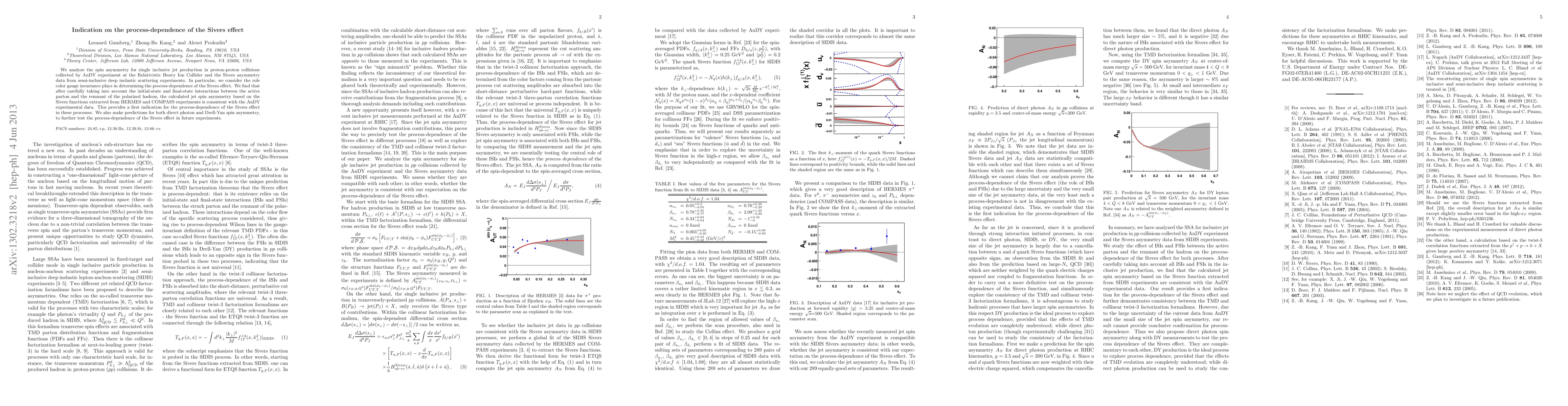 We analyze the spin asymmetry for single inclusive jet production in proton-proton collisions collected by AnDY experiment at the Relativistic Heavy Ion Collider and the Sivers asymmetry data from semi-inclusive deep inelastic scattering experiments. In particular, we consider the role color gauge invariance plays in determining the process-dependence of the Sivers effect. We find that after carefully taking into account the initial-state and final-state interactions between the active parton and the remnant of the polarized hadron, the calculated jet spin asymmetry based on the Sivers functions extracted from HERMES and COMPASS experiments is consistent with the AnDY experimental data. This provides a first indication for the process-dependence of the Sivers effect in these processes. We also make predictions for both direct photon and Drell-Yan spin asymmetry, to further test the process-dependence of the Sivers effect in future experiments.