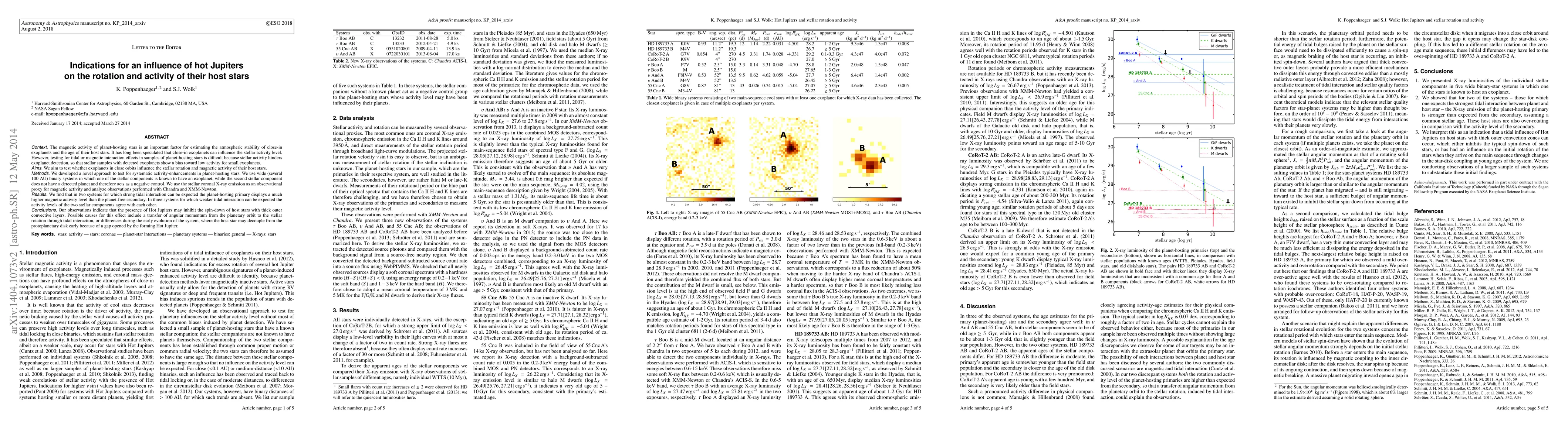 The magnetic activity of planet-hosting stars is an important factor to estimate the atmospheric stability of close-in exoplanets and the age of their host stars. It has long been speculated that close-in exoplanets can influence the stellar activity level. However, testing for tidal or magnetic interaction effects in samples of planet-hosting stars is difficult because stellar activity hinders exoplanet detection, so that stellar samples with detected exoplanets show a bias towards low activity for small exoplanets. We aim to test if exoplanets in close orbits influence the stellar rotation and magnetic activity of their host stars, and have developed a novel approach to test for such systematic activity enhancements. We use wide (several 100 AU) binary systems in which one of the stellar components is known to have an exoplanet, while the second stellar component does not have a detected planet and therefore acts as a negative control. We use the stellar coronal X-ray emission as an observational proxy for magnetic activity, and analyze observations performed with Chandra and XMM-Newton. We find that in two systems for which strong tidal interaction can be expected the planet-hosting primary displays a much higher magnetic activity level than the planet-free secondary. In three systems for which weaker tidal interaction can be expected the activity levels of both stellar components are in agreement. Our observations indicate that the presence of Hot Jupiters may inhibit the spin-down of host stars with thick outer convective layers. Possible causes for such an effect include a transfer of angular momentum from the planetary orbit to the stellar rotation through tidal interaction, or differences during the early evolution of the system, where the host star may decouple from the protoplanetary disk early due to a gap opened by the forming Hot Jupiter.