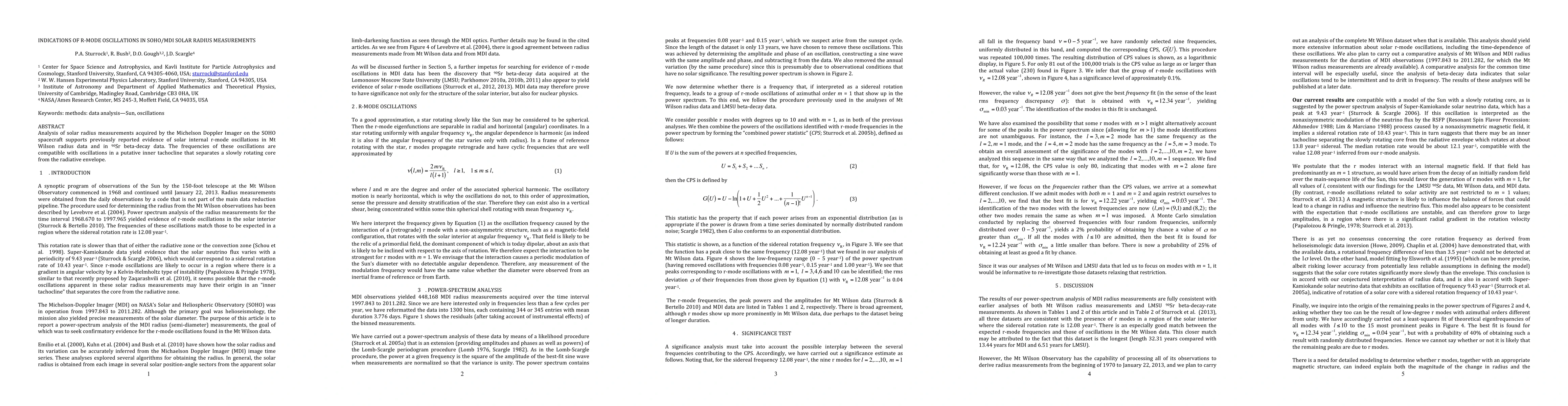 This paper analyzes SOHO/MDI solar radius measurements to provide evidence for r-mode oscillations within the Sun, corroborating previous findings from Mt Wilson and Lomonosov Moscow data. The detected frequencies align with oscillations in the inner tachocline.