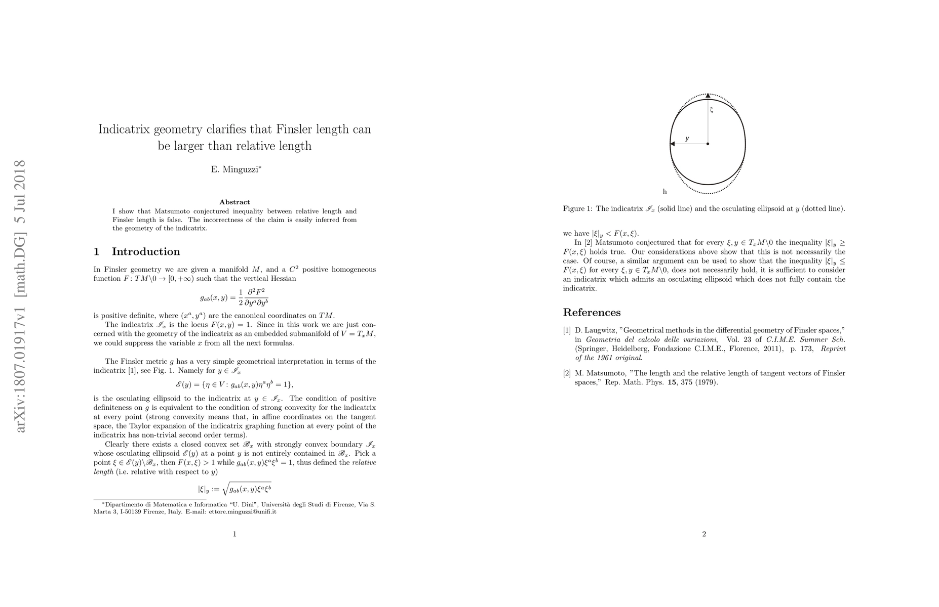 I show that Matsumoto conjectured inequality between relative length and Finsler length is false. The incorrectness of the claim is easily inferred from the geometry of the indicatrix.