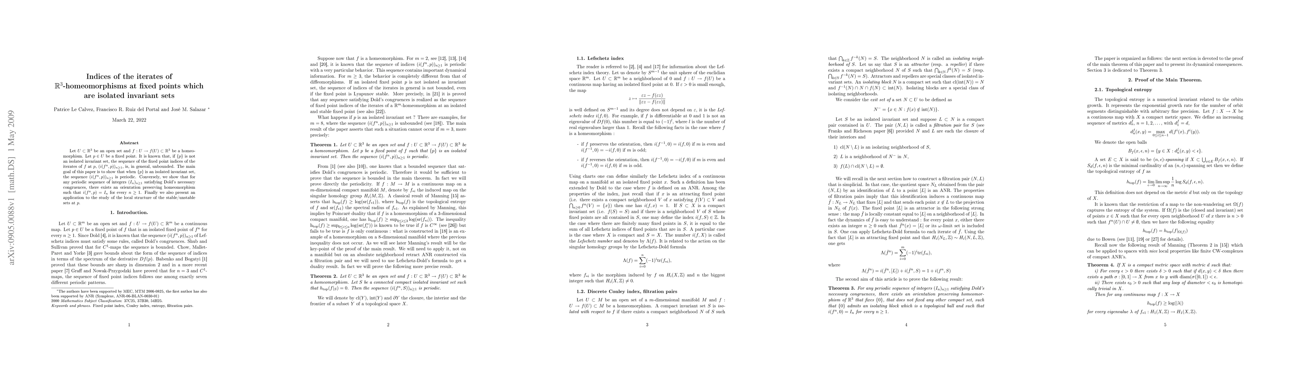 This paper investigates the behavior of fixed point indices for iterates of homeomorphisms in \(\mathbb{R}^3\), demonstrating that when the fixed point forms an isolated invariant set, the sequence of indices is periodic. It also constructs an orientation-preserving homeomorphism for any given periodic sequence of indices satisfying specific congruences.
