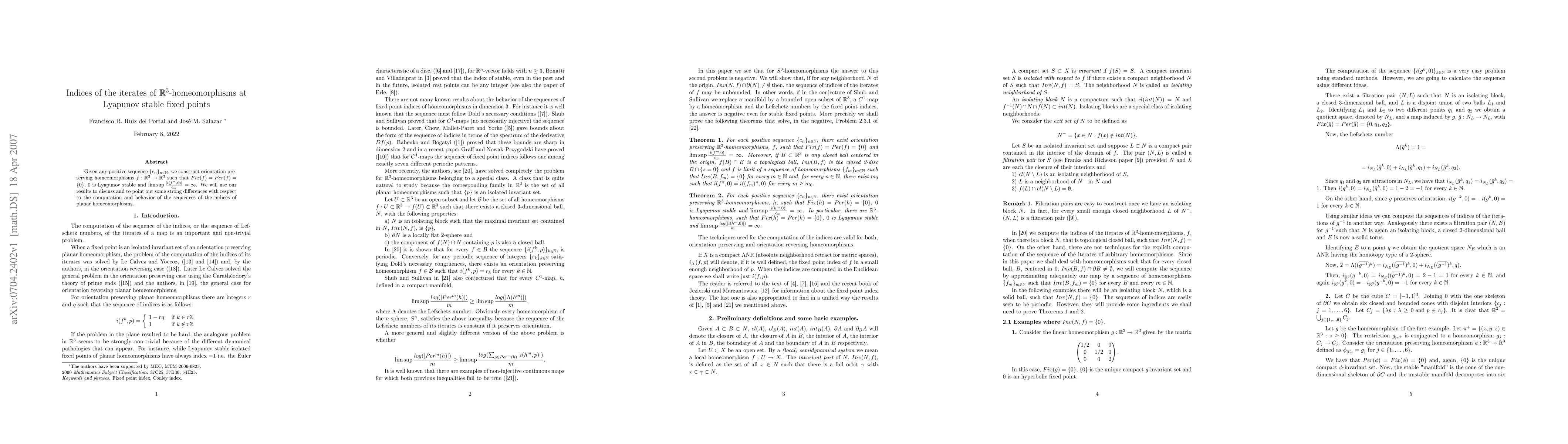 This paper constructs orientation-preserving homeomorphisms of $\mathbb{R}^3$ with a Lyapunov stable fixed point at the origin, demonstrating that the sequence of iterates' indices can diverge relative to any positive sequence. It contrasts these results with the behavior of planar homeomorphisms.