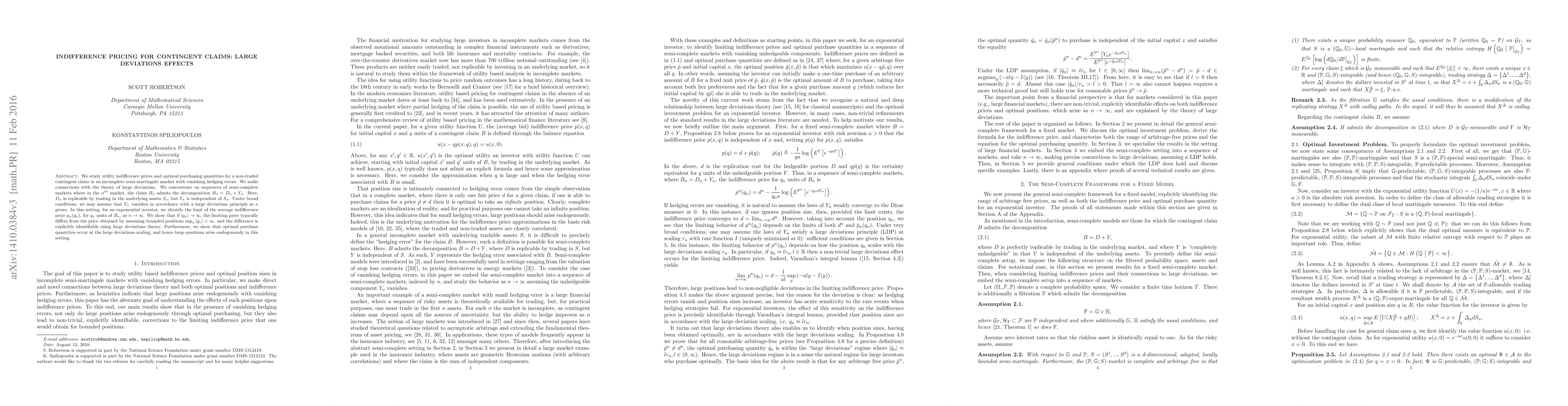 We study utility indifference prices and optimal purchasing quantities for a non-traded contingent claim in an incomplete semi-martingale market with vanishing hedging errors. We make connections with the theory of large deviations. We concentrate on sequences of semi-complete markets where in the $n^{th}$ market, the claim $B_n$ admits the decomposition $B_n = D_n+Y_n$. Here, $D_n$ is replicable by trading in the underlying assets $S_n$, but $Y_n$ is independent of $S_n$. Under broad conditions, we may assume that $Y_n$ vanishes in accordance with a large deviations principle as $n$ grows. In this setting, for an exponential investor, we identify the limit of the average indifference price $p_n(q_n)$, for $q_n$ units of $B_n$, as $n\rightarrow \infty$. We show that if $|q_n|\rightarrow\infty$, the limiting price typically differs from the price obtained by assuming bounded positions $\sup_n|q_n|<\infty$, and the difference is explicitly identifiable using large deviations theory. Furthermore, we show that optimal purchase quantities occur at the large deviations scaling, and hence large positions arise endogenously in this setting.