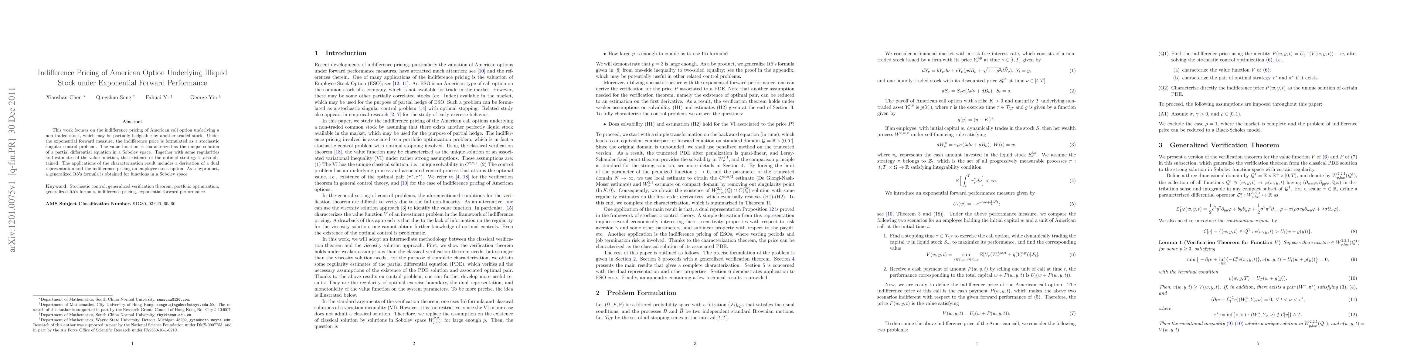 This work focuses on the indifference pricing of American call option underlying a non-traded stock, which may be partially hedgeable by another traded stock. Under the exponential forward measure, the indifference price is formulated as a stochastic singular control problem. The value function is characterized as the unique solution of a partial differential equation in a Sobolev space. Together with some regularities and estimates of the value function, the existence of the optimal strategy is also obtained. The applications of the characterization result includes a derivation of a dual representation and the indifference pricing on employee stock option. As a byproduct, a generalized Ito's formula is obtained for functions in a Sobolev space.
