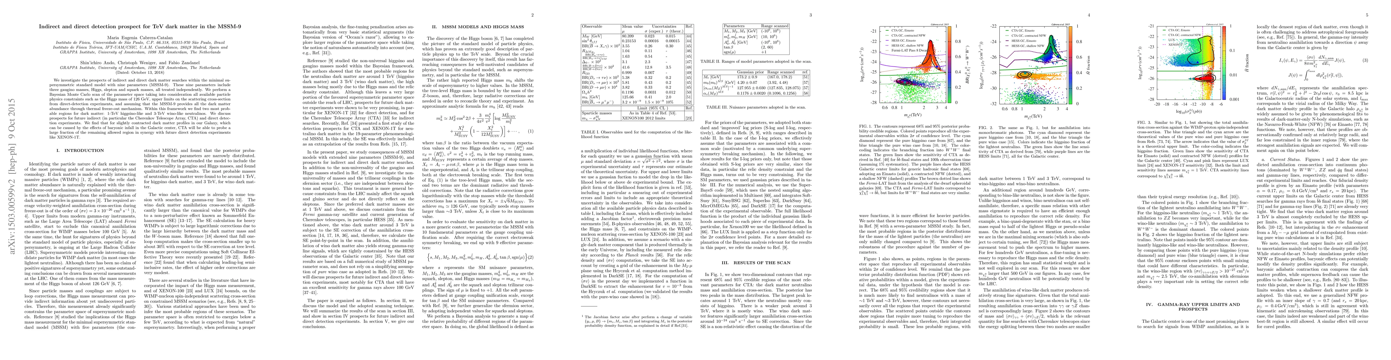 This paper explores the potential for indirect and direct detection of TeV dark matter within the MSSM-9 framework, identifying higgsino-like and wino-like neutralinos as the most probable dark matter candidates. It concludes that future experiments like CTA and XENON-1T can significantly probe the remaining allowed regions.