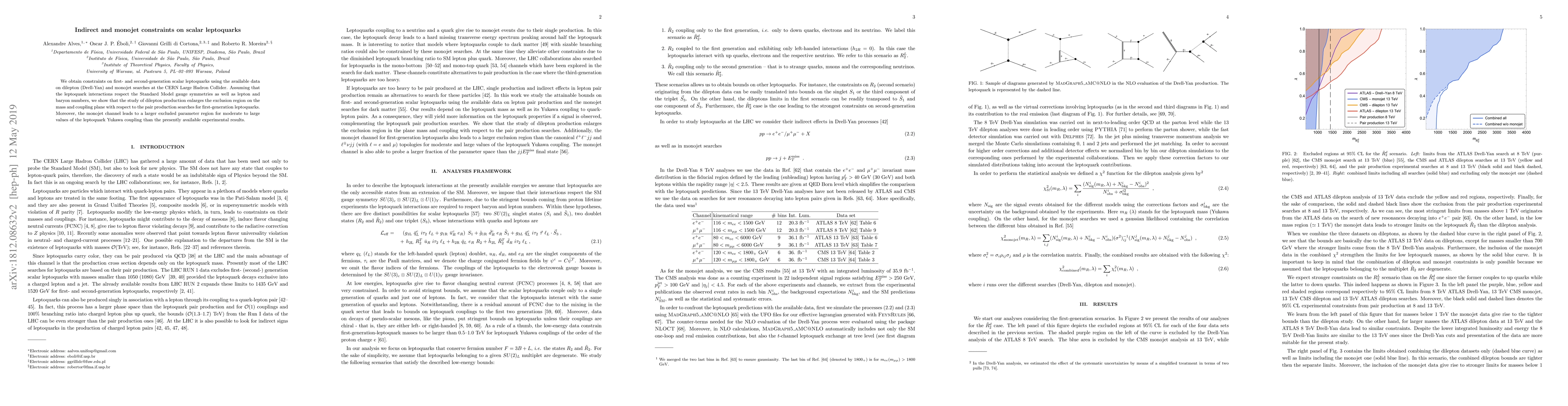 We obtain constraints on first- and second-generation scalar leptoquarks using the available data on dilepton (Drell-Yan) and monojet searches at the CERN Large Hadron Collider. Assuming that the leptoquark interactions respect the Standard Model gauge symmetries as well as lepton and baryon numbers, we show that the study of dilepton production enlarges the exclusion region on the mass and coupling plane with respect to the pair production searches for first-generation leptoquarks. Moreover, the monojet channel leads to a larger excluded parameter region for moderate to large values of the leptoquark Yukawa coupling than the presently available experimental results.