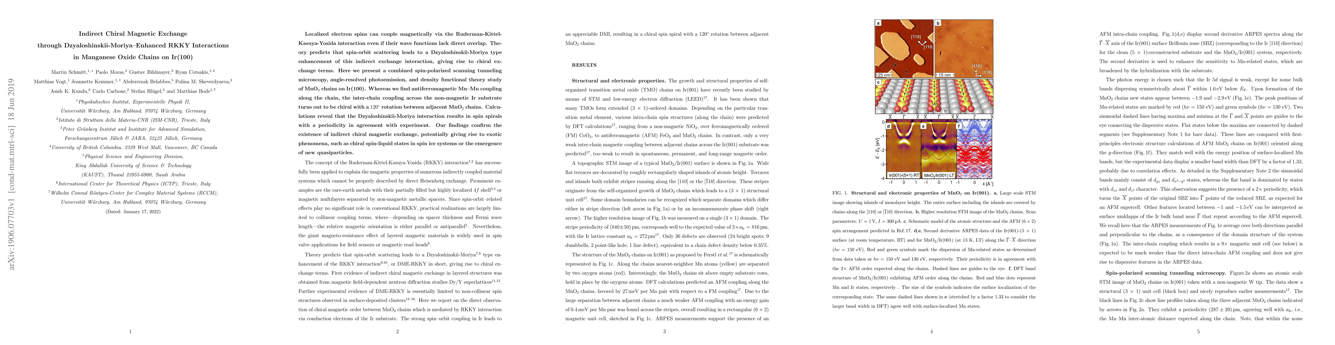 This study combines experimental and theoretical methods to demonstrate indirect chiral magnetic exchange in MnO2 chains on Ir(100), enhanced by Dzyaloshinskii-Moriya interactions. The research reveals antiferromagnetic coupling within chains and chiral coupling between chains, supporting the existence of indirect chiral magnetic exchange, which could lead to exotic phenomena like chiral spin-liquid states or new quasiparticles.