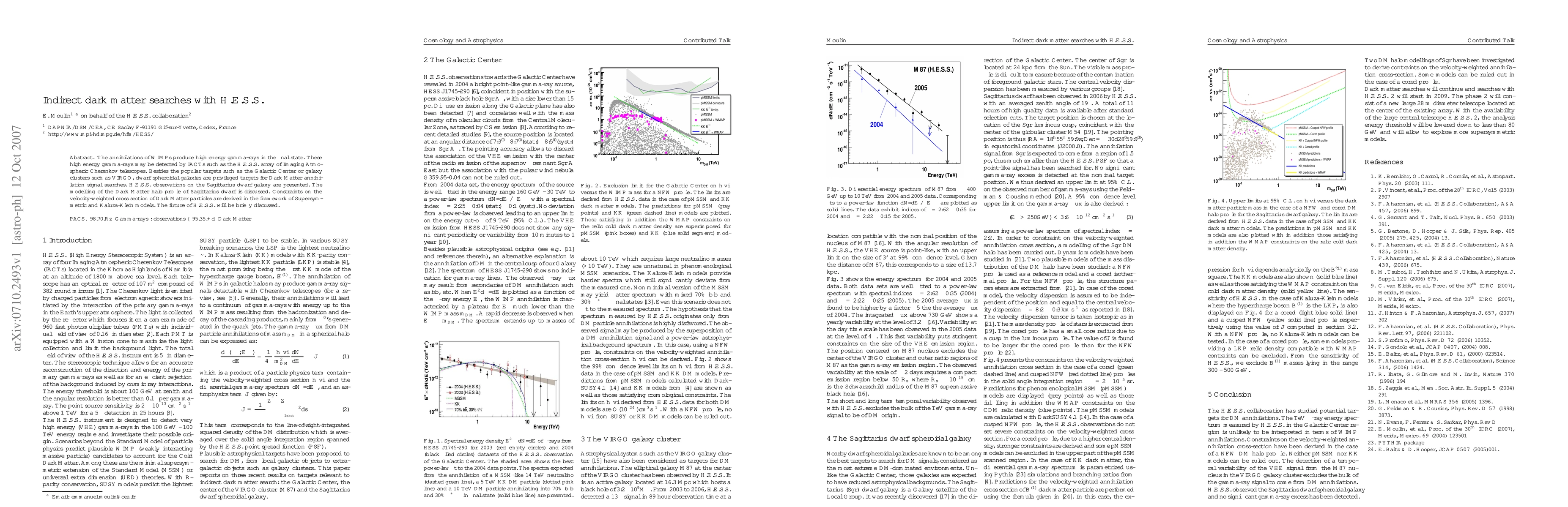 The annihilations of WIMPs produce high energy gamma-rays in the final state. These high energy gamma-rays may be detected by IACTs such as the H.E.S.S. array of Imaging Atmospheric Cherenkov telescopes. Besides the popular targets such as the Galactic Center or galaxy clusters such as VIRGO, dwarf spheroidal galaxies are privileged targets for Dark Matter annihilation signal searches. H.E.S.S. observations on the Sagittarius dwarf galaxy are presented. The modelling of the Dark Matter halo profile of Sagittarius dwarf is discussed. Constraints on the velocity-weighted cross section of Dark Matter particles are derived in the framework of Supersymmetric and Kaluza-Klein models. The future of H.E.S.S. will be briefly discussed.