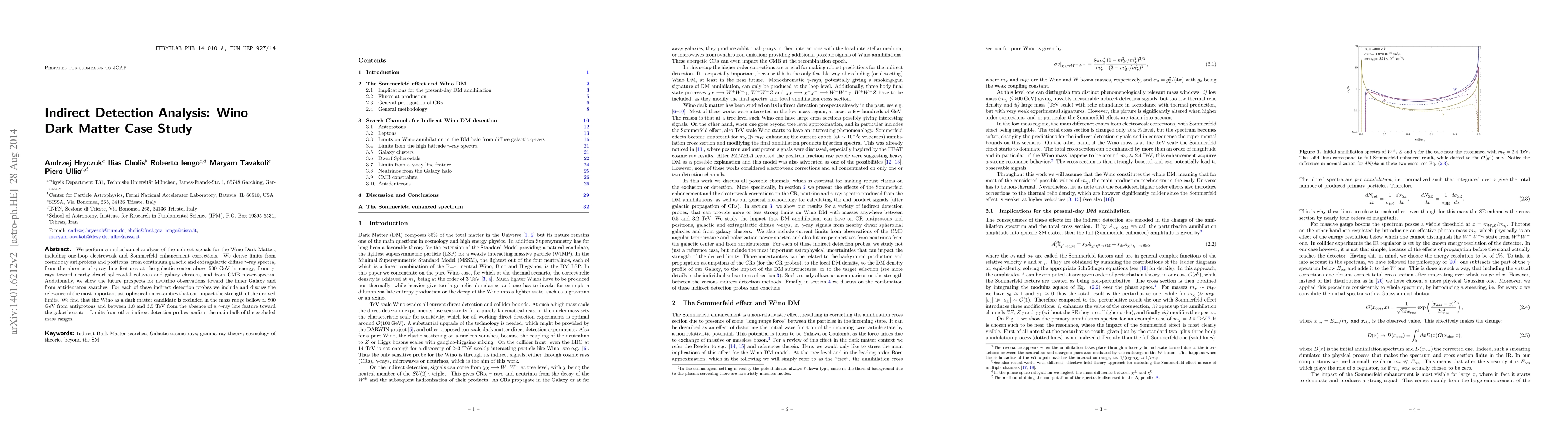 Researchers used multiple indirect detection methods to rule out Wino Dark Matter as a candidate for dark matter in mass ranges below 800 GeV and between 1.8-3.5 TeV.