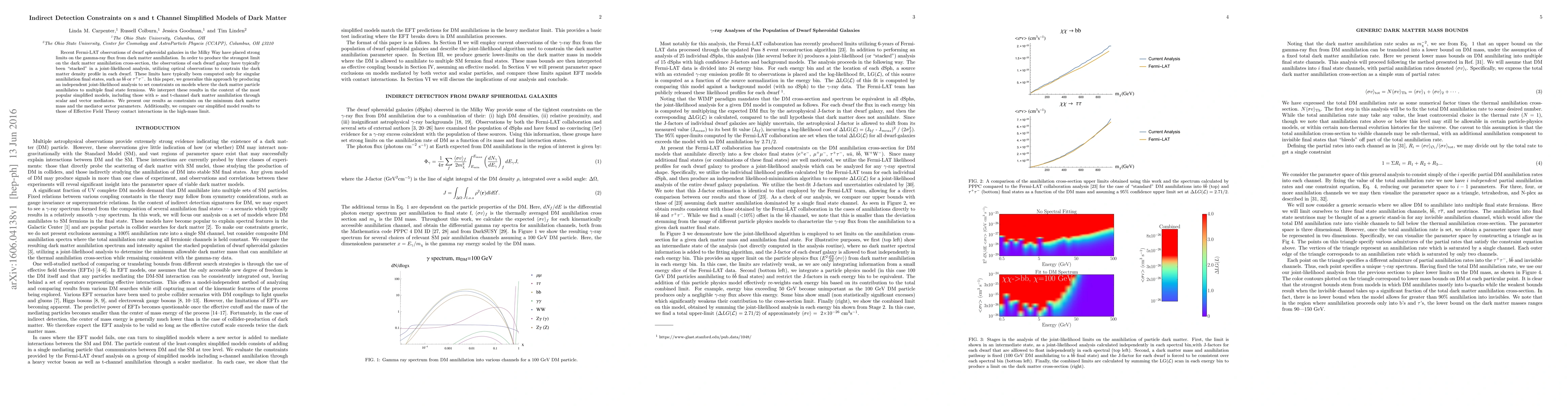 The paper develops a method for setting constraints on simplified models of dark matter annihilation through scalar and vector mediators using indirect detection data from dwarf spheroidal galaxies.