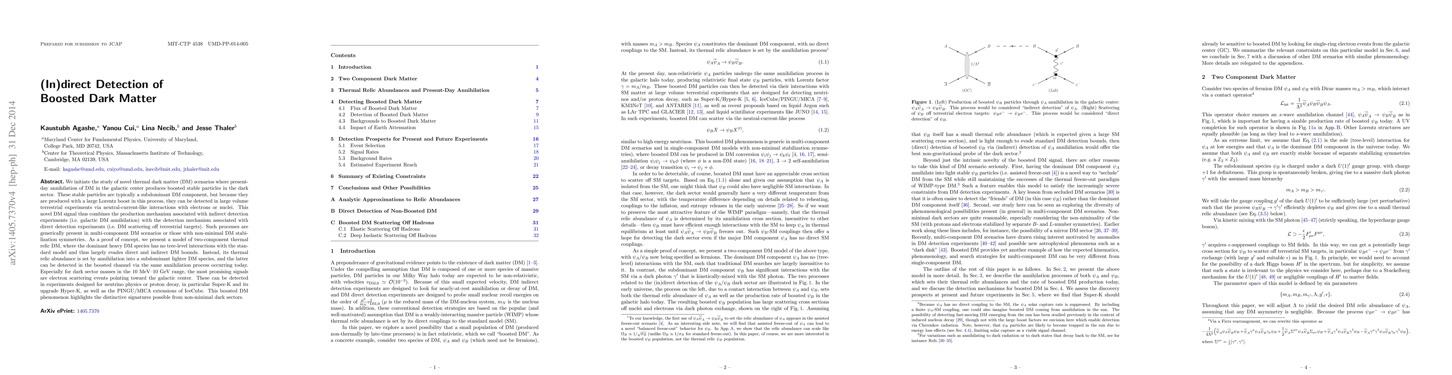 This paper explores a novel dark matter (DM) scenario where boosted stable particles from DM annihilation in the galactic center can be detected terrestrially via neutral-current-like interactions. It proposes a two-component DM model where a dominant heavy DM species evades direct and indirect detection, while a subdominant lighter DM species can be detected through boosted scattering, particularly in neutrino and proton decay experiments like Super-K and IceCube.