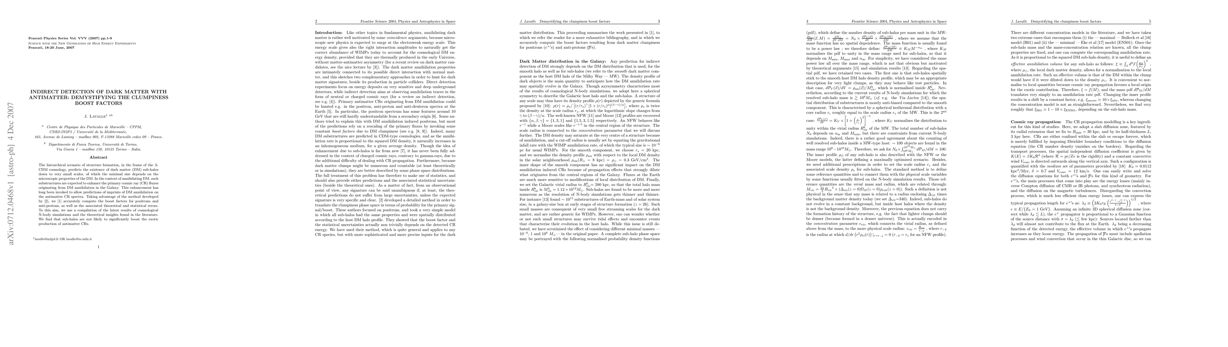 The hierarchical scenario of structure formation, in the frame of the $\Lambda$-CDM cosmology, predicts the existence of dark matter (DM) sub-halos down to very small scales, of which the minimal size depends on the microscopic properties of the DM. In the context of annihilating DM, such substructures are expected to enhance the primary cosmic ray (CR) fluxes originating from DM annihilation in the Galaxy. This enhancement has long been invoked to allow predictions of imprints of DM annihilation on the antimatter CR spectra. Taking advantage of the method developed by Lavalle et al (2007b), we (Lavalle et al, 2007a) accurately compute the boost factors for positrons and anti-protons, as well as the associated theoretical and statistical errors. To this aim, we use a compilation of the latest results of cosmological N-body simulations and the theoretical insights found in the literature. We find that sub-halos are not likely to significantly boost the exotic production of antimatter CRs.