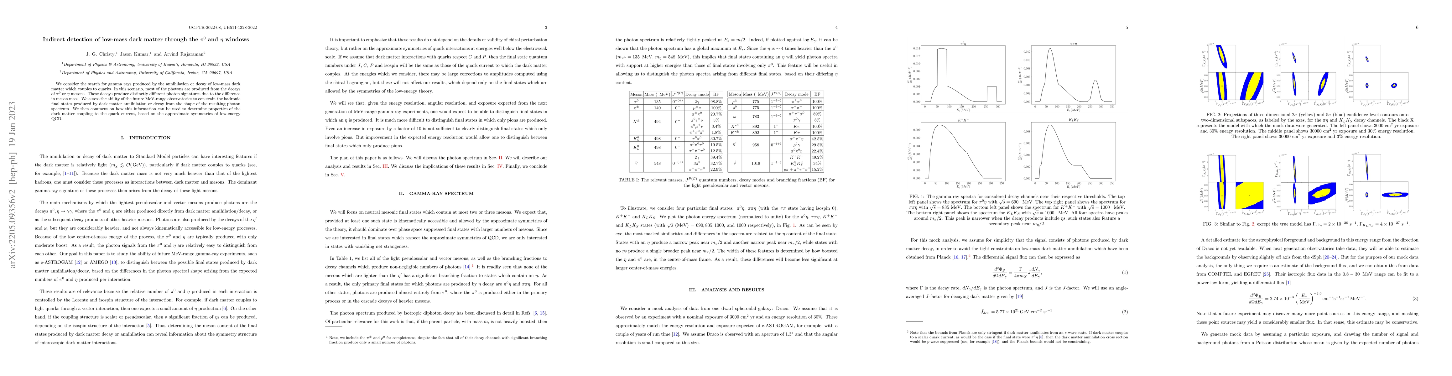 We consider the search for gamma-rays produced by the annihilation or decay of low-mass dark matter which couples to quarks. In this scenario, most of the photons are produced from the decays of $\pi^0$ or $\eta$ mesons. These decays produce distinctly different photon signatures due to the difference in meson mass. We assess the ability of the future MeV-range observatories to constrain the hadronic final states produced by dark matter annihilation or decay from the shape of the resulting photon spectrum. We then comment on how this information can be used to determine properties of the dark matter coupling to the quark current, based on the approximate symmetries of low-energy QCD.