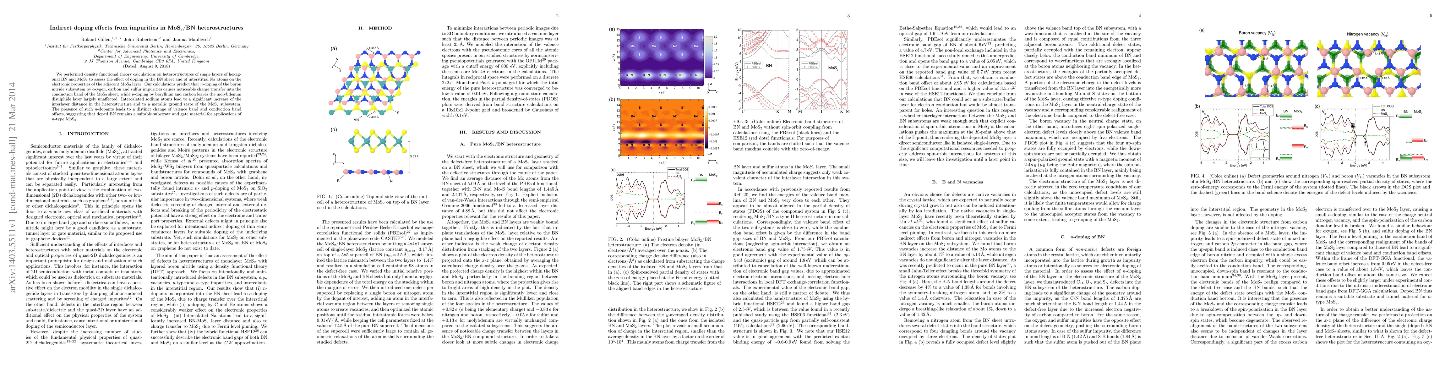 Summary: Density functional theory calculations reveal that $n$-doping of hexagonal BN by oxygen, carbon, and sulfur impurities transfers charge to the conduction band of adjacent MoS$_2$, while $p$-doping with beryllium and carbon has minimal effect. Intercalated sodium increases the heterostructure's interlayer distance and induces a metallic state in MoS$_2$. $n$-doped BN retains suitability as a substrate and gate material for $n$-type MoS$_2$ applications.