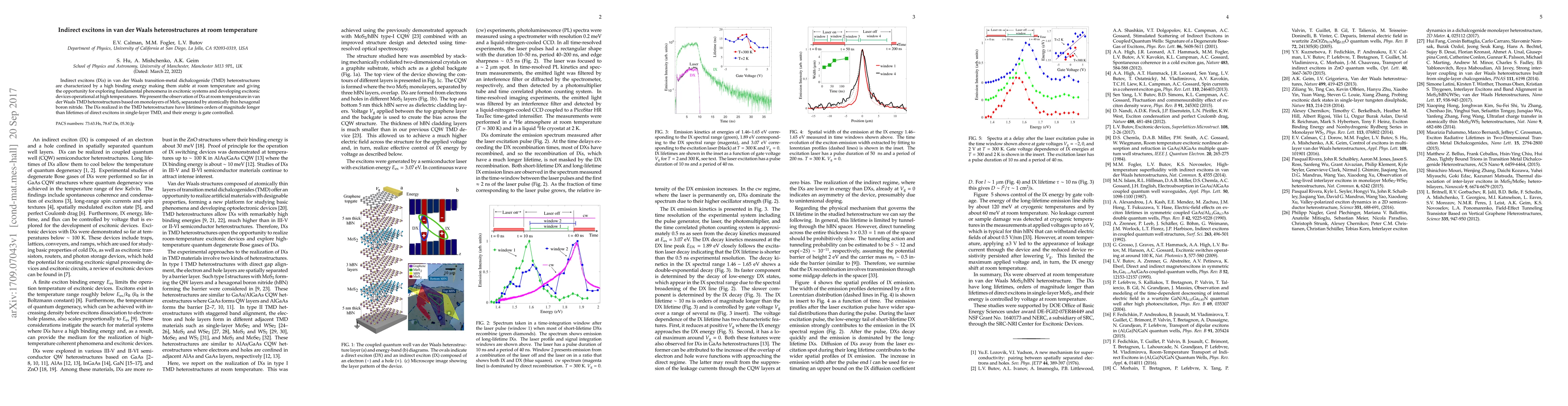 Summary: This paper reports the observation of stable indirect excitons in van der Waals TMD heterostructures at room temperature, demonstrating their high binding energy and gate-controlled energy, with lifetimes significantly longer than direct excitons in single-layer TMD. This finding opens avenues for excitonic devices operating at high temperatures.