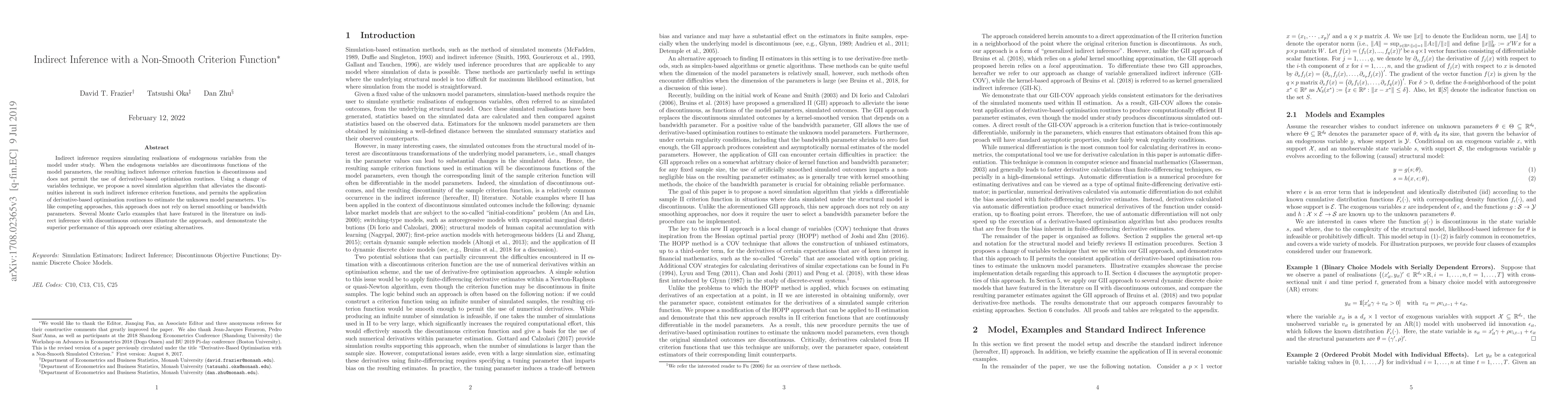 Indirect inference requires simulating realisations of endogenous variables from the model under study. When the endogenous variables are discontinuous functions of the model parameters, the resulting indirect inference criterion function is discontinuous and does not permit the use of derivative-based optimisation routines. Using a change of variables technique, we propose a novel simulation algorithm that alleviates the discontinuities inherent in such indirect inference criterion functions, and permits the application of derivative-based optimisation routines to estimate the unknown model parameters. Unlike competing approaches, this approach does not rely on kernel smoothing or bandwidth parameters. Several Monte Carlo examples that have featured in the literature on indirect inference with discontinuous outcomes illustrate the approach, and demonstrate the superior performance of this approach over existing alternatives.