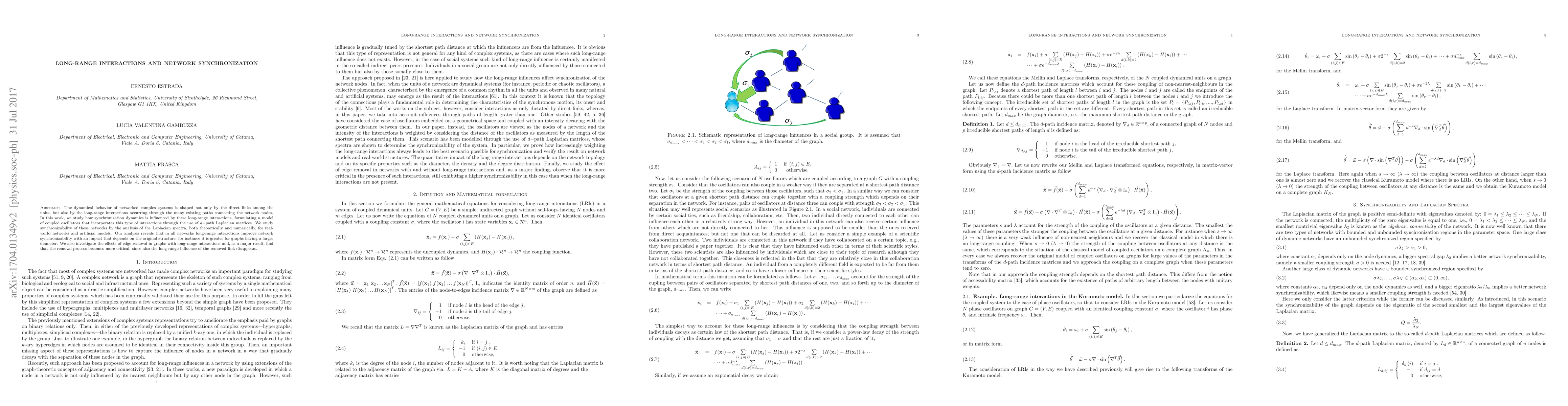 This research investigates how long-range interactions in complex networks influence synchronization dynamics using coupled oscillator models and $d-$path Laplacian matrices. The study finds that long-range interactions enhance network synchronizability, with the effect varying based on the network's original structure, and reveals that edge removal significantly impacts synchronization due to the loss of long-range influences.