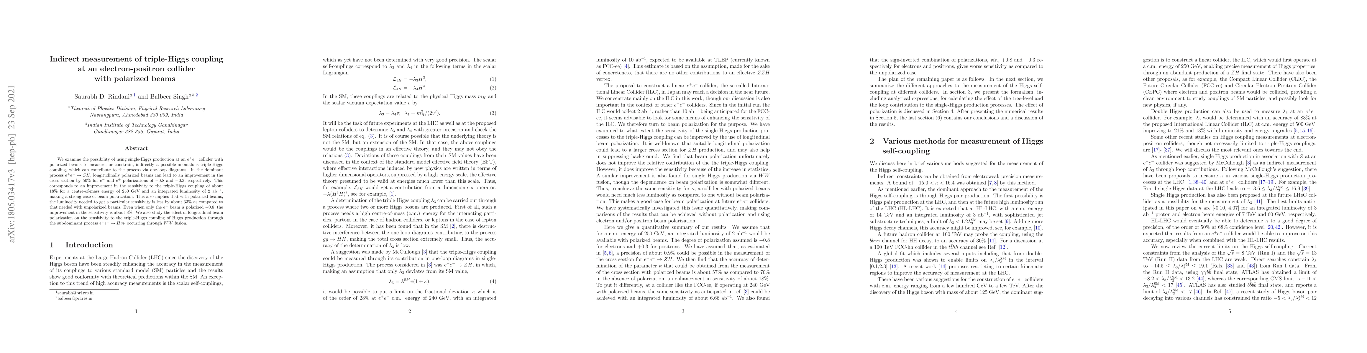 The paper presents a detailed analysis of how beam polarization affects the cross-section and sensitivity to the anomalous triple-Higgs coupling in single-Higgs production processes at an electron-positron collider.