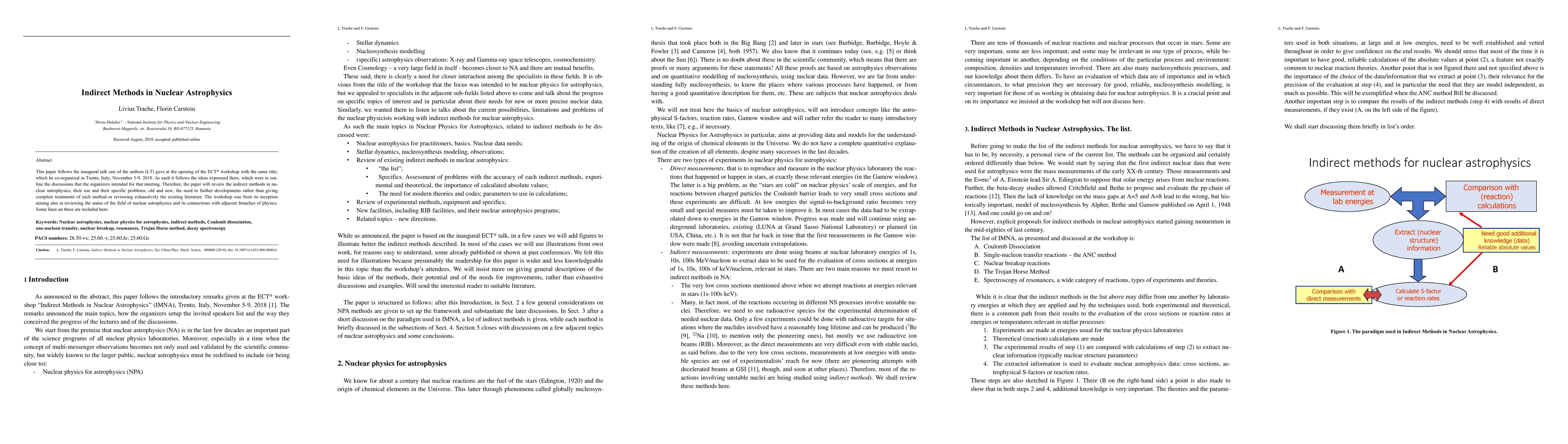The paper reviews indirect methods in nuclear astrophysics, focusing on discussions from a workshop in Trento, Italy, 2018, rather than providing exhaustive treatments of each method.