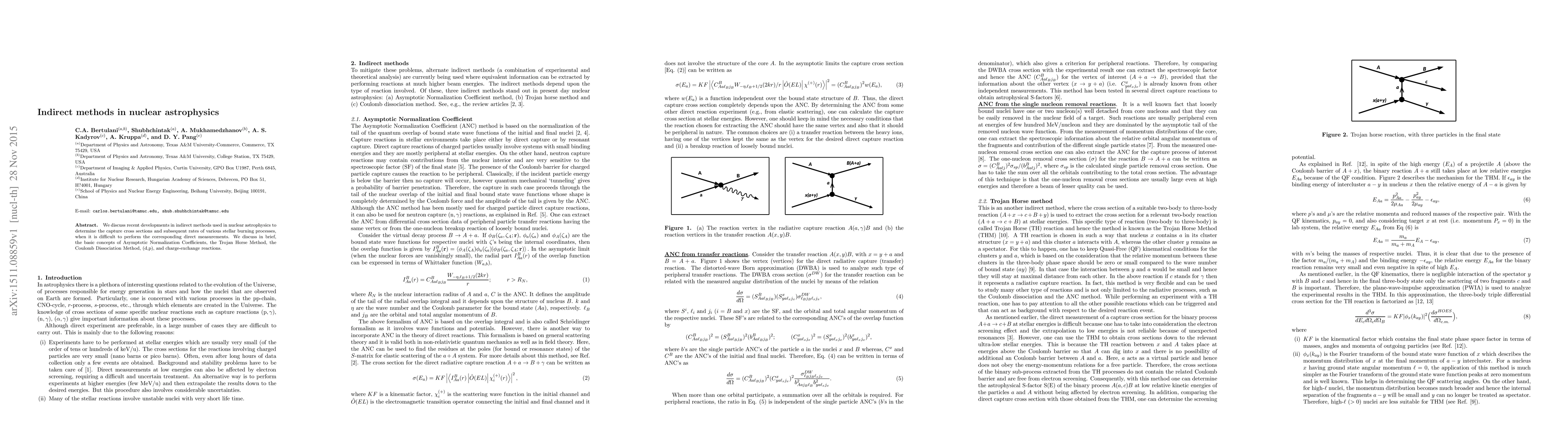 This paper reviews recent advancements in indirect methods for nuclear astrophysics, focusing on determining capture cross sections and stellar burning rates where direct measurements are impractical. It briefly covers techniques such as Asymptotic Normalization Coefficients, the Trojan Horse Method, Coulomb Dissociation Method, (d,p) reactions, and charge-exchange reactions.