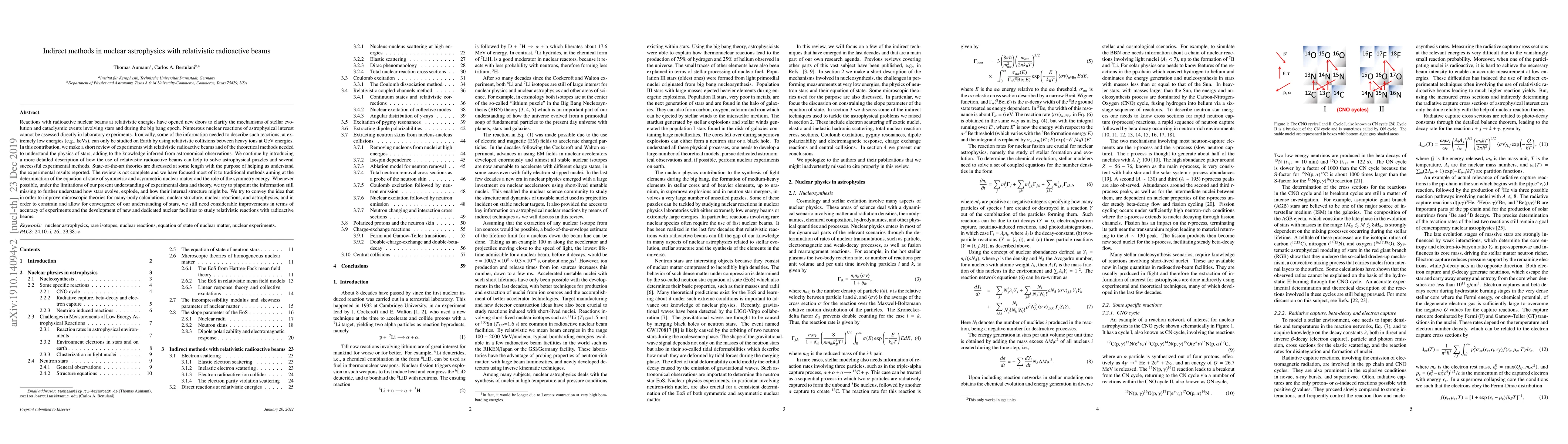 The paper discusses state-of-the-art theories and experimental methods to understand nuclear reactions relevant for astrophysics using relativistic radioactive beams.