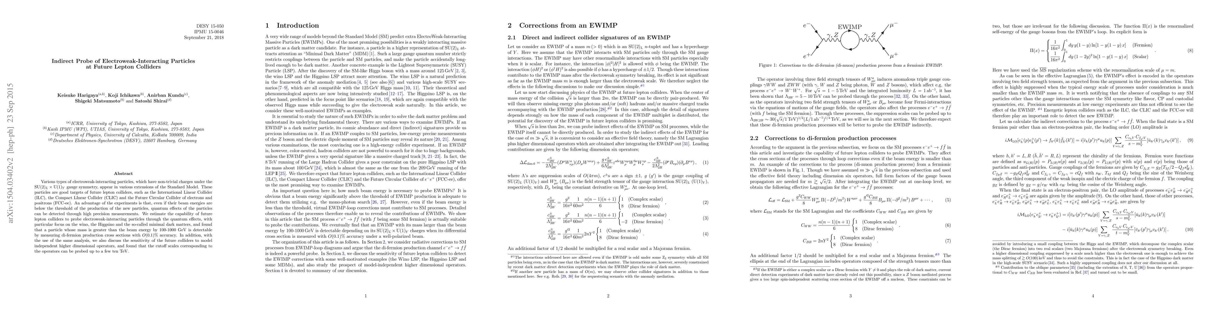 This paper explores the potential of future lepton colliders to indirectly probe electroweak-interacting particles via high precision measurements, even when their beam energies are below production thresholds. It finds that particles with masses up to 1000 GeV above the beam energy can be detected through di-fermion production cross sections, with colliders like ILC, CLIC, and FCC-ee achieving accuracies of $O(0.1)$%.