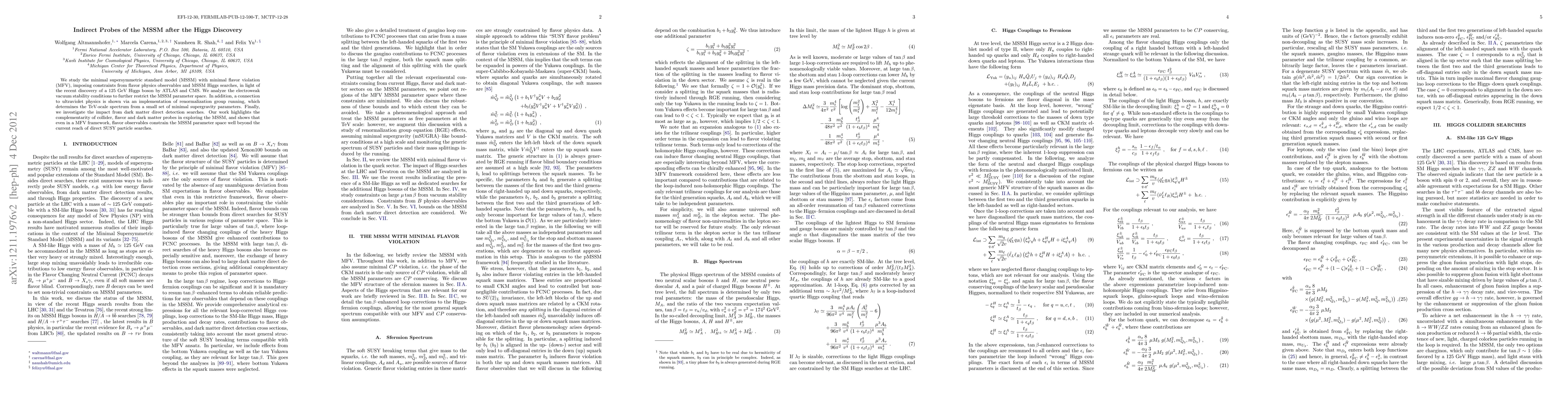 We study the minimal supersymmetric standard model (MSSM) with minimal flavor violation (MFV), imposing constraints from flavor physics observables and MSSM Higgs searches, in light of the recent discovery of a 125 GeV Higgs boson by ATLAS and CMS. We analyze the electroweak vacuum stability conditions to further restrict the MSSM parameter space. In addition, a connection to ultraviolet physics is shown via an implementation of renormalization group running, which determines the TeV-scale spectrum from a small set of minimal supergravity parameters. Finally, we investigate the impact from dark matter direct detection searches. Our work highlights the complementarity of collider, flavor and dark matter probes in exploring the MSSM, and shows that even in a MFV framework, flavor observables constrain the MSSM parameter space well beyond the current reach of direct SUSY particle searches.