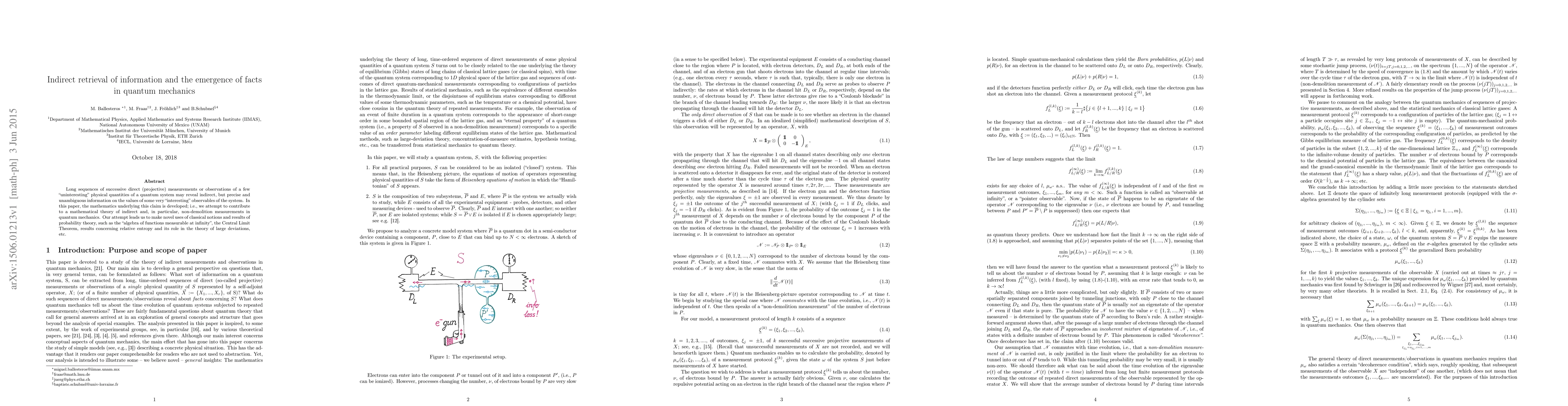 Long sequences of successive direct (projective) measurements or observations of a few "uninteresting" physical quantities of a quantum system may reveal indirect, but precise and unambiguous information on the values of some very "interesting" observables of the system. In this paper, the mathematics underlying this claim is developed; i.e., we attempt to contribute to a mathematical theory of indirect and, in particular, non-demolition measurements in quantum mechanics. Our attempt leads us to make novel uses of classical notions and results of probability theory, such as the "algebra of functions measurable at infinity", the Central Limit Theorem, results concerning relative entropy and its role in the theory of large deviations, etc.
