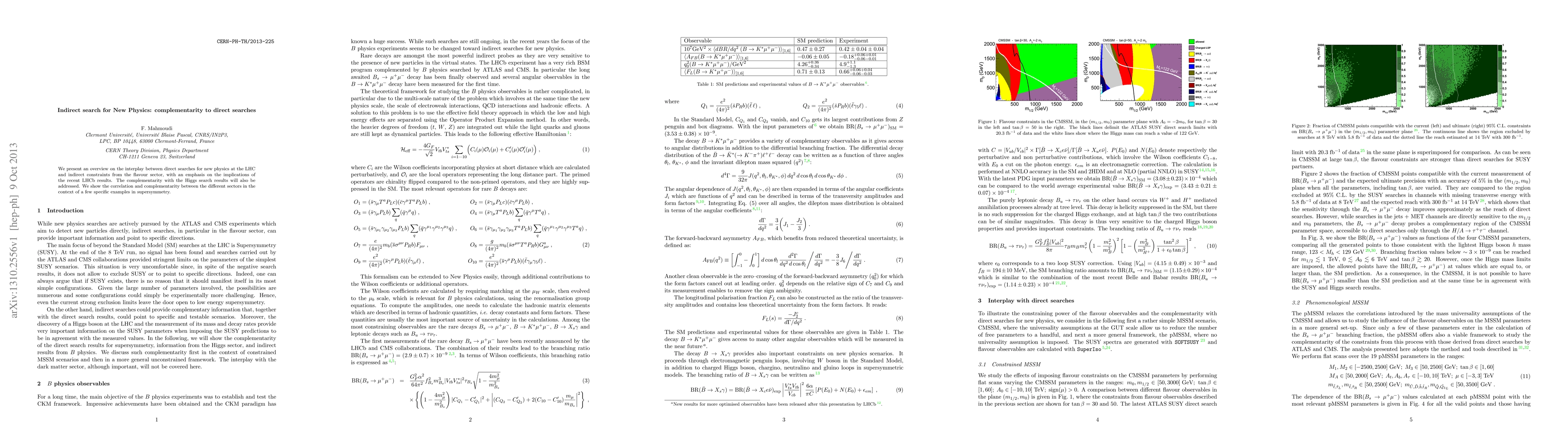 This paper reviews the synergy between direct searches for new physics at the LHC and indirect constraints from the flavor sector, highlighting recent LHCb findings and their implications. It also discusses the complementary nature of these approaches with Higgs search results, using specific examples in supersymmetry to illustrate the interplay.