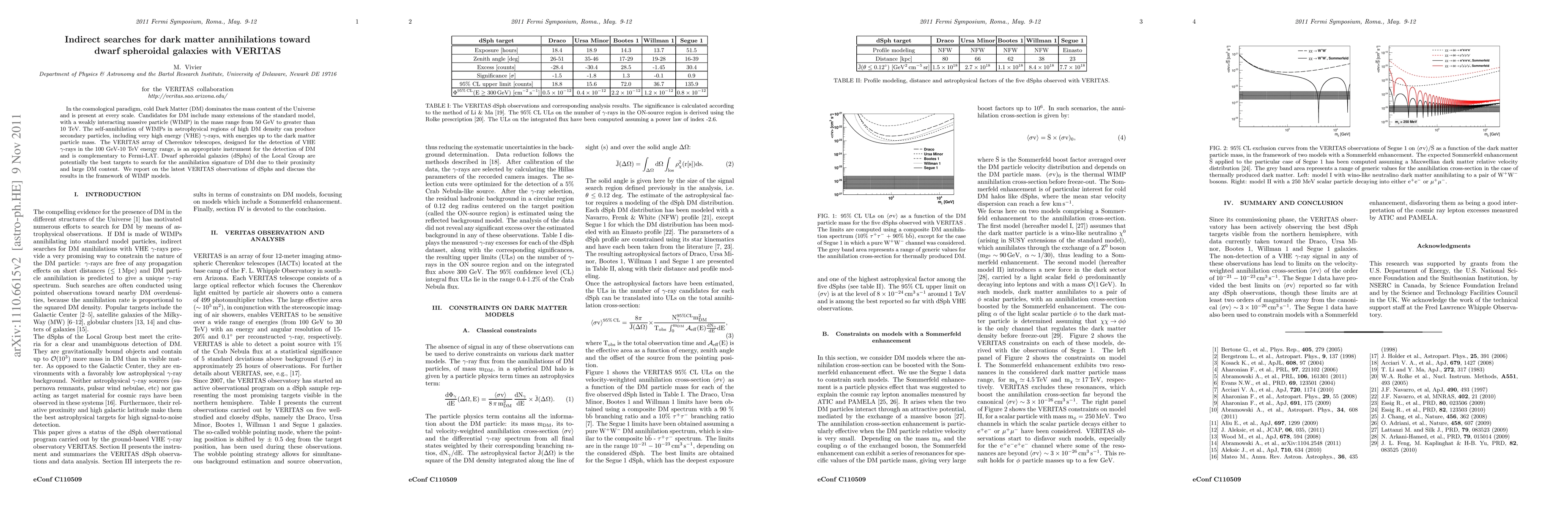 This paper reports on VERITAS observations of dwarf spheroidal galaxies to search for gamma rays resulting from dark matter annihilation, focusing on weakly interacting massive particles (WIMPs). The findings contribute to understanding the presence and properties of dark matter in these regions.