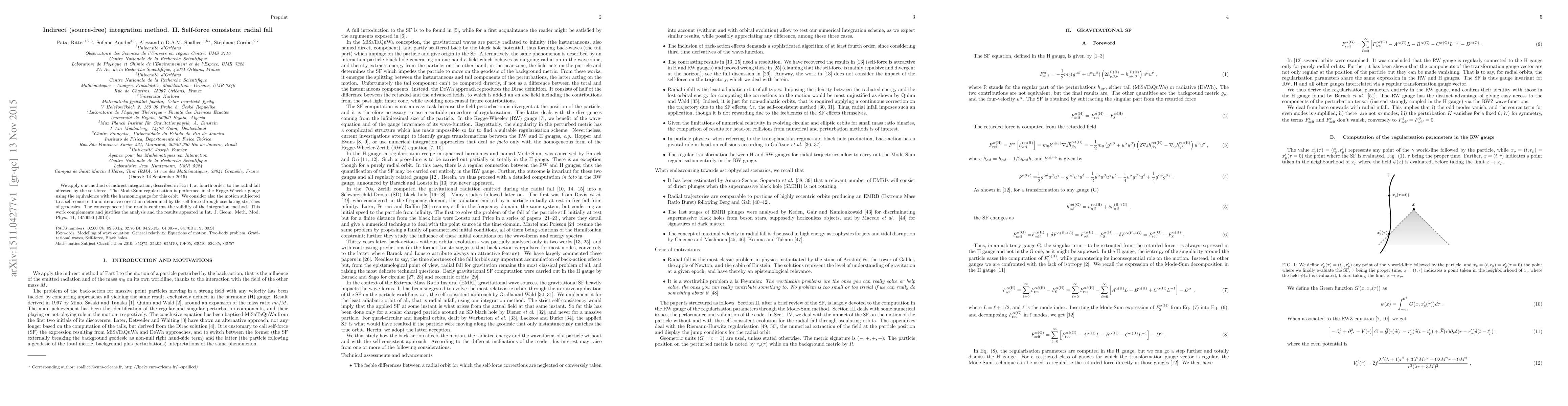 We apply our method of indirect integration, described in Part I, at fourth order, to the radial fall affected by the self-force. The Mode-Sum regularisation is performed in the Regge-Wheeler gauge using the equivalence with the harmonic gauge for this orbit. We consider also the motion subjected to a self-consistent and iterative correction determined by the self-force through osculating stretches of geodesics. The convergence of the results confirms the validity of the integration method. This work complements and justifies the analysis and the results appeared in Int. J. Geom. Meth. Mod. Phys., 11, 1450090 (2014).