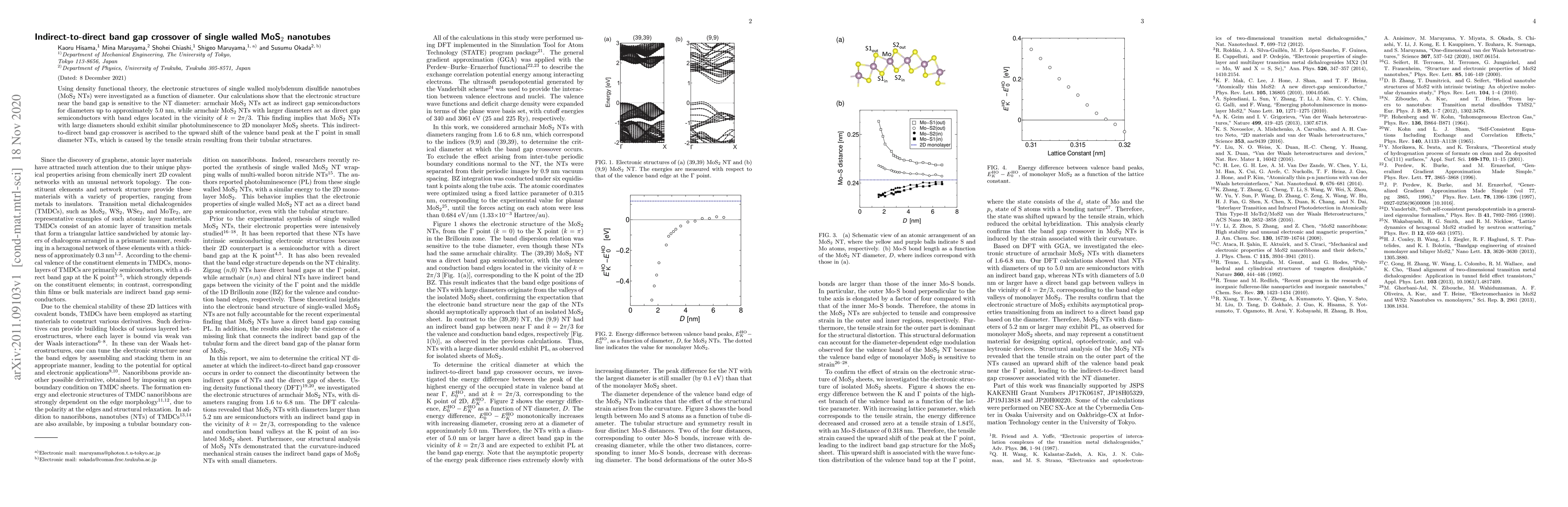 This study reveals that single-walled MoS$_2$ nanotubes undergo an indirect-to-direct band gap transition as their diameter increases, transitioning from indirect gap semiconductors in smaller tubes to direct gap semiconductors in larger ones. The change is due to the tensile strain causing an upward shift in the valence band peak.