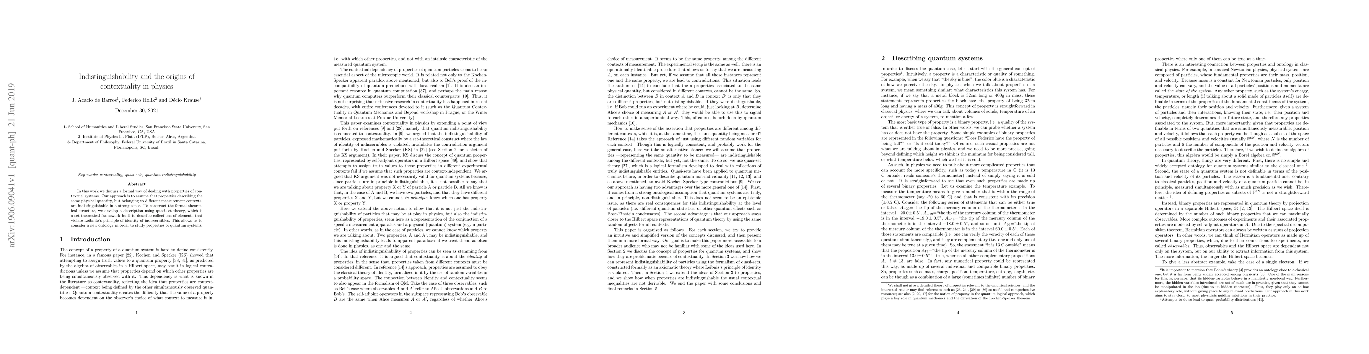 Researchers introduce a new framework to study contextuality in physics, proposing that properties from different measurement contexts are indistinguishable. This approach uses quasi-set theory to develop an ontology for understanding quantum systems.