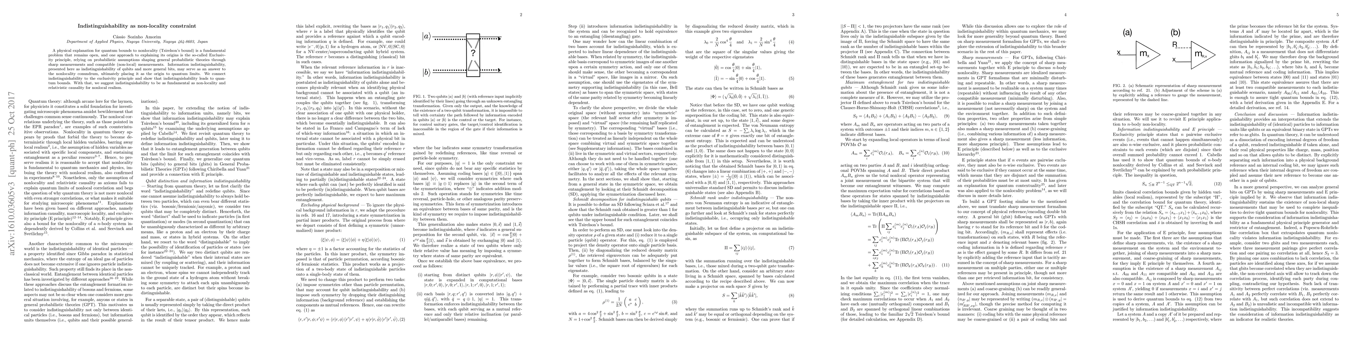 The research explores the concept of information indistinguishability as a constraint on nonlocality, connecting it to the exclusivity principle and quantum bounds (Tsirelson's bound) through probabilistic assumptions and sharp measurements.