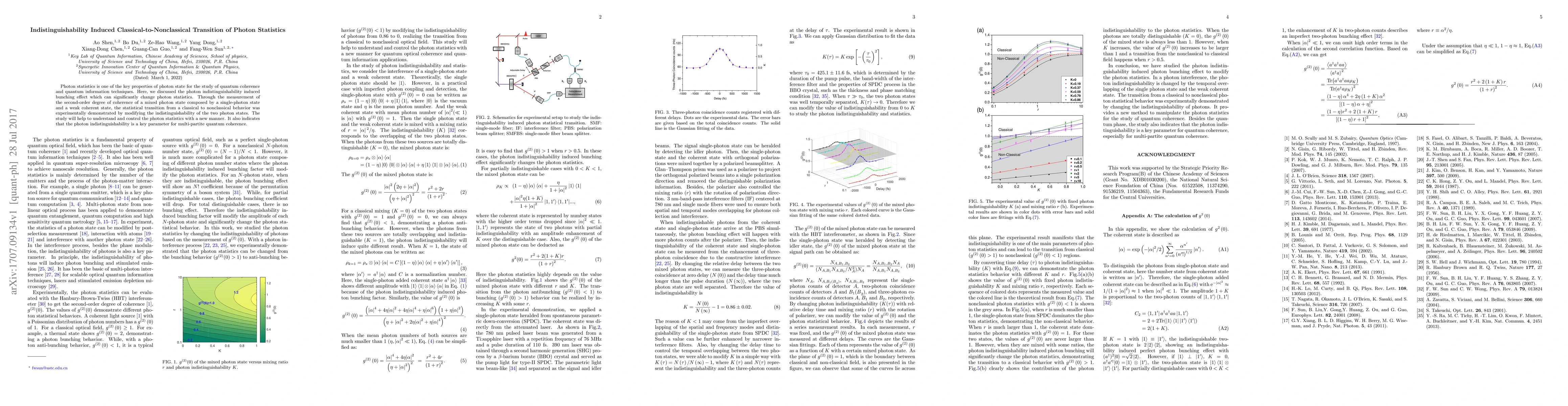 This paper explores how photon indistinguishability can induce a transition from classical to nonclassical photon statistics, demonstrating this effect through the second-order degree of coherence measurement. Experimental results show that altering the indistinguishability of two-photon states can shift photon statistics from classical to nonclassical behavior, highlighting its importance for quantum optical coherence and quantum information applications.