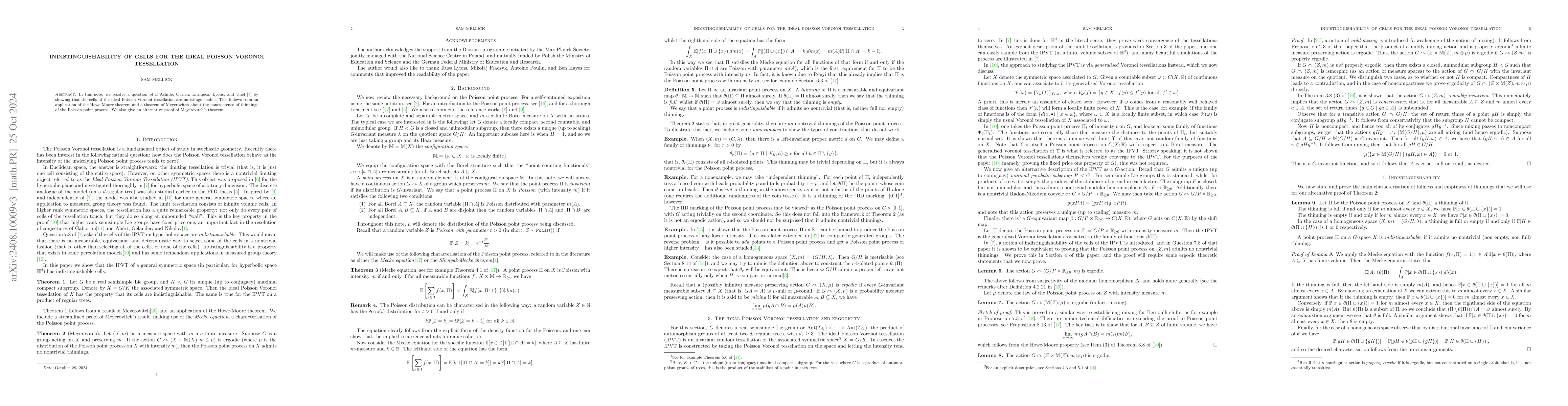 In this note, we resolve a question of D'Achille, Curien, Enriquez, Lyons, and \"Unel by showing that the cells of the ideal Poisson Voronoi tessellation are indistinguishable. This follows from an application of the Howe-Moore theorem and a theorem of Meyerovitch about the nonexistence of thinnings of the Poisson point process. We also give an alternative proof of Meyerovitch's theorem.