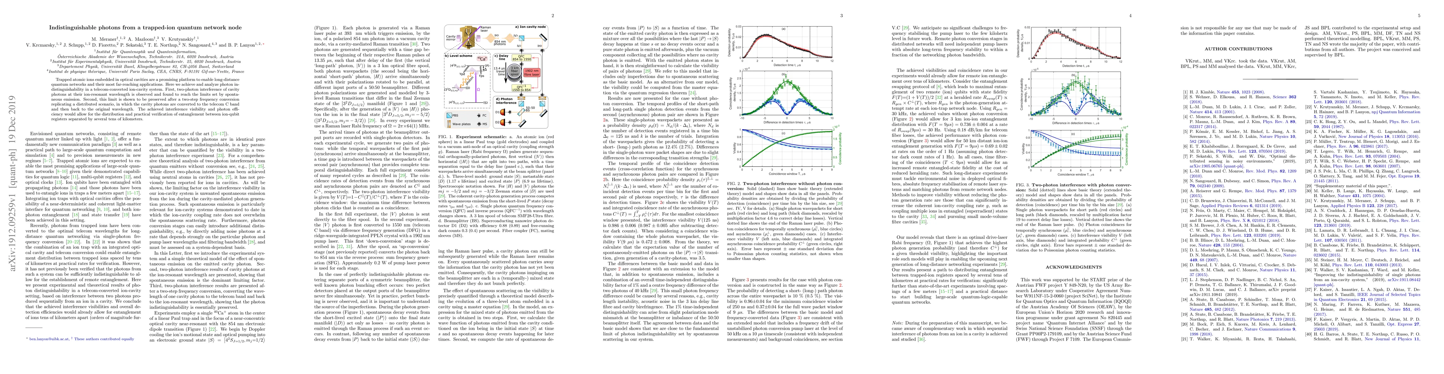 This paper demonstrates high-quality indistinguishable photons from a trapped-ion quantum network node, achieving two-photon interference limits set by spontaneous emission. The study also preserves these limits through a two-step frequency conversion, enabling potential long-distance quantum entanglement distribution.